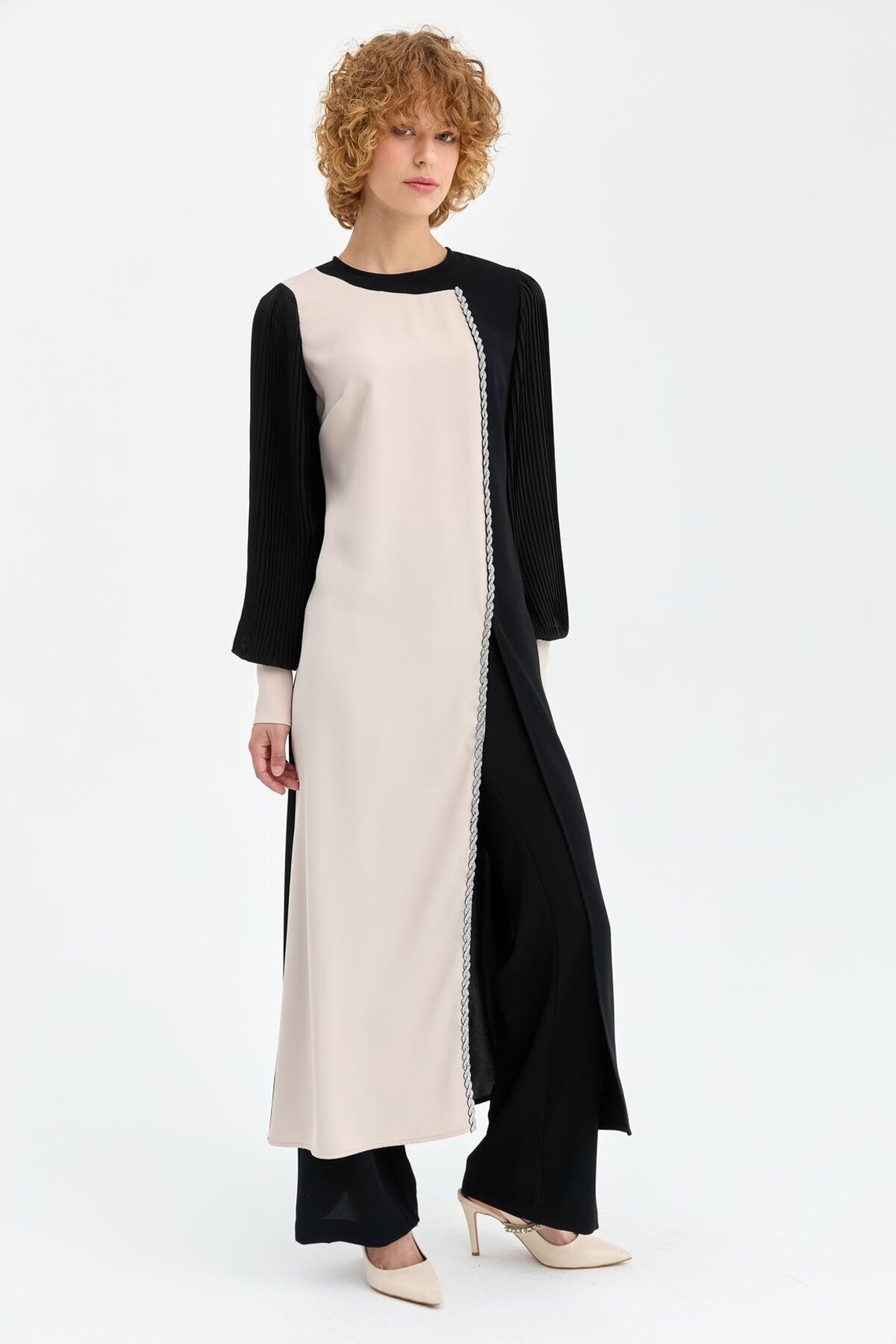Siyah Beyaz Taş Detaylı Elbise Siyah Siyah Beyaz Taş Detaylı Elbise Siyah 2119004200 52
