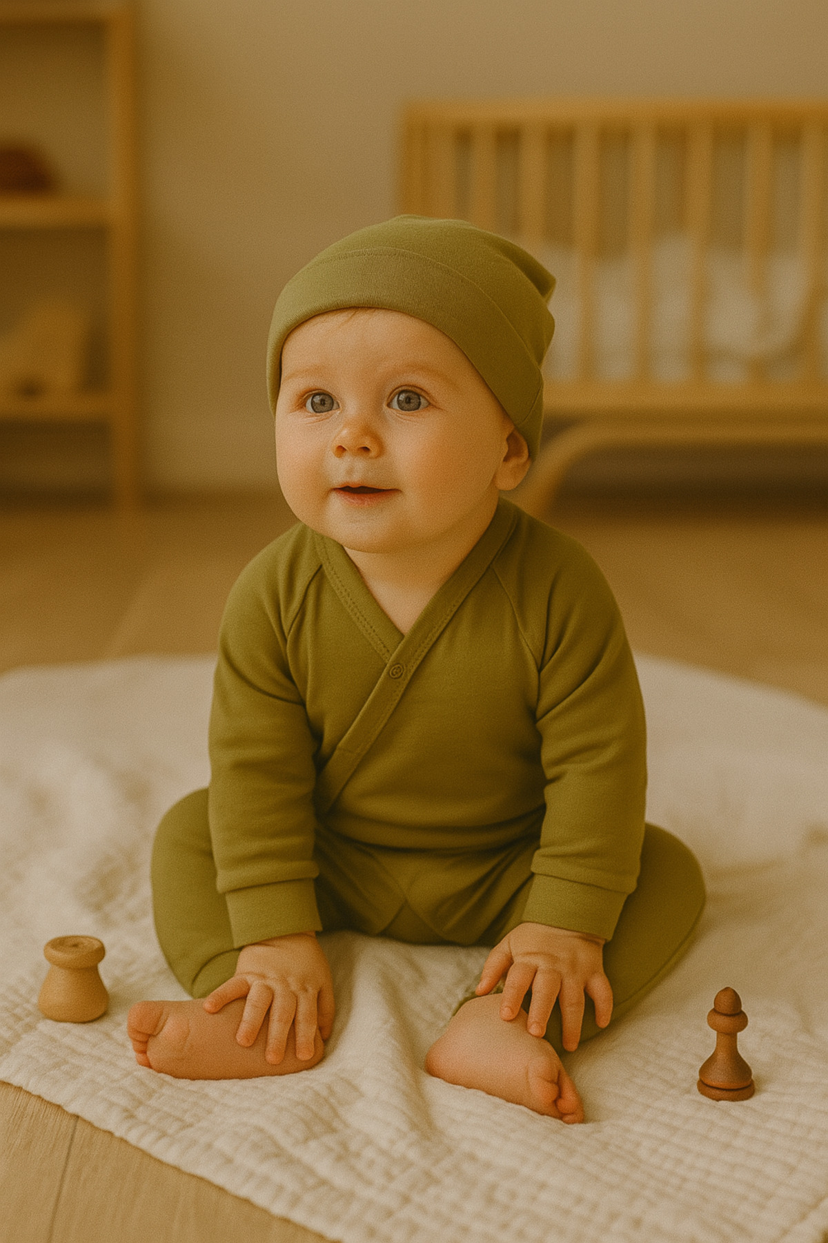 Yaka Kruvaze Düğmeli Şapkalı Tulum Seti Yaka Kruvaze Düğmeli Şapkalı Tulum Seti MNBT 6-9 AY