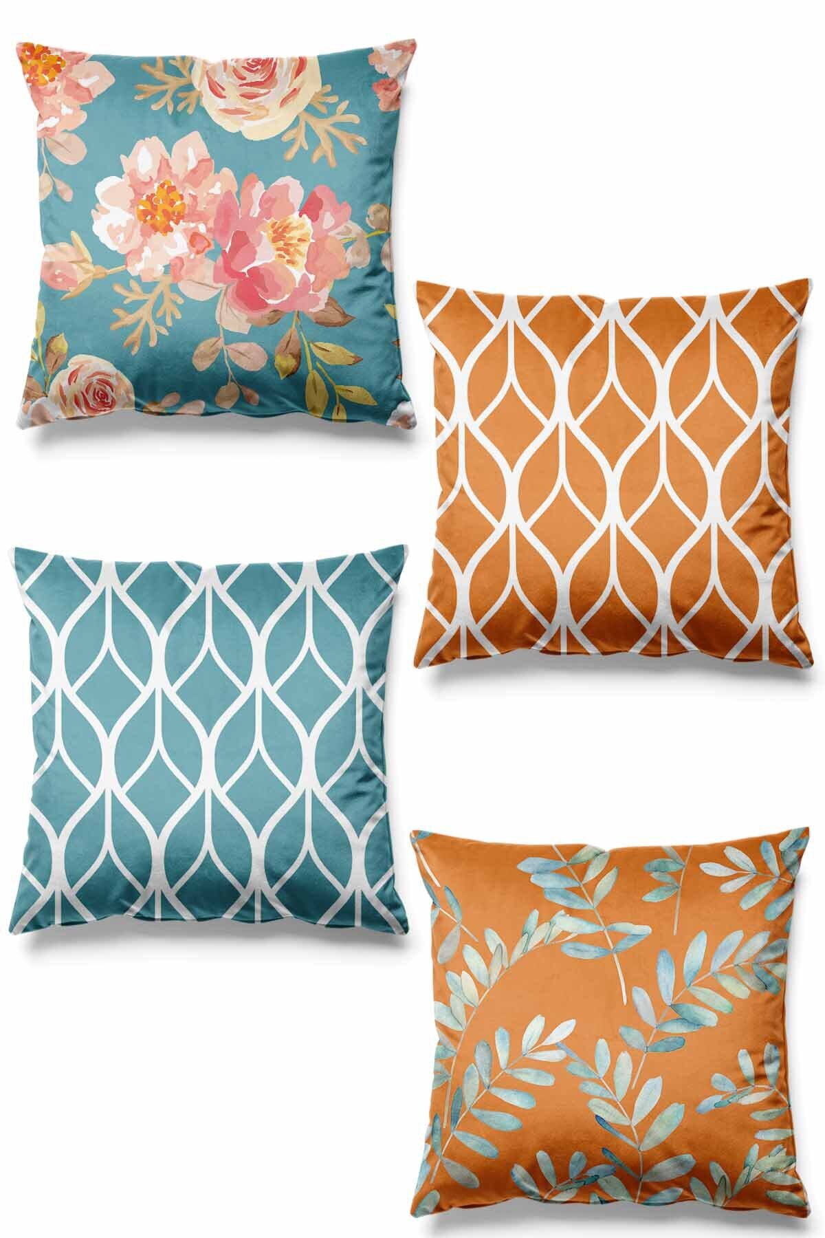 Çift Tarafı Baskılı Daisy Desenli 4'lü Set Süet Kırlent Kılıfı Çift Tarafı Baskılı Daisy Desenli 4'lü Set Süet Kırlent Kılıfı PLV0S543 43 x 43