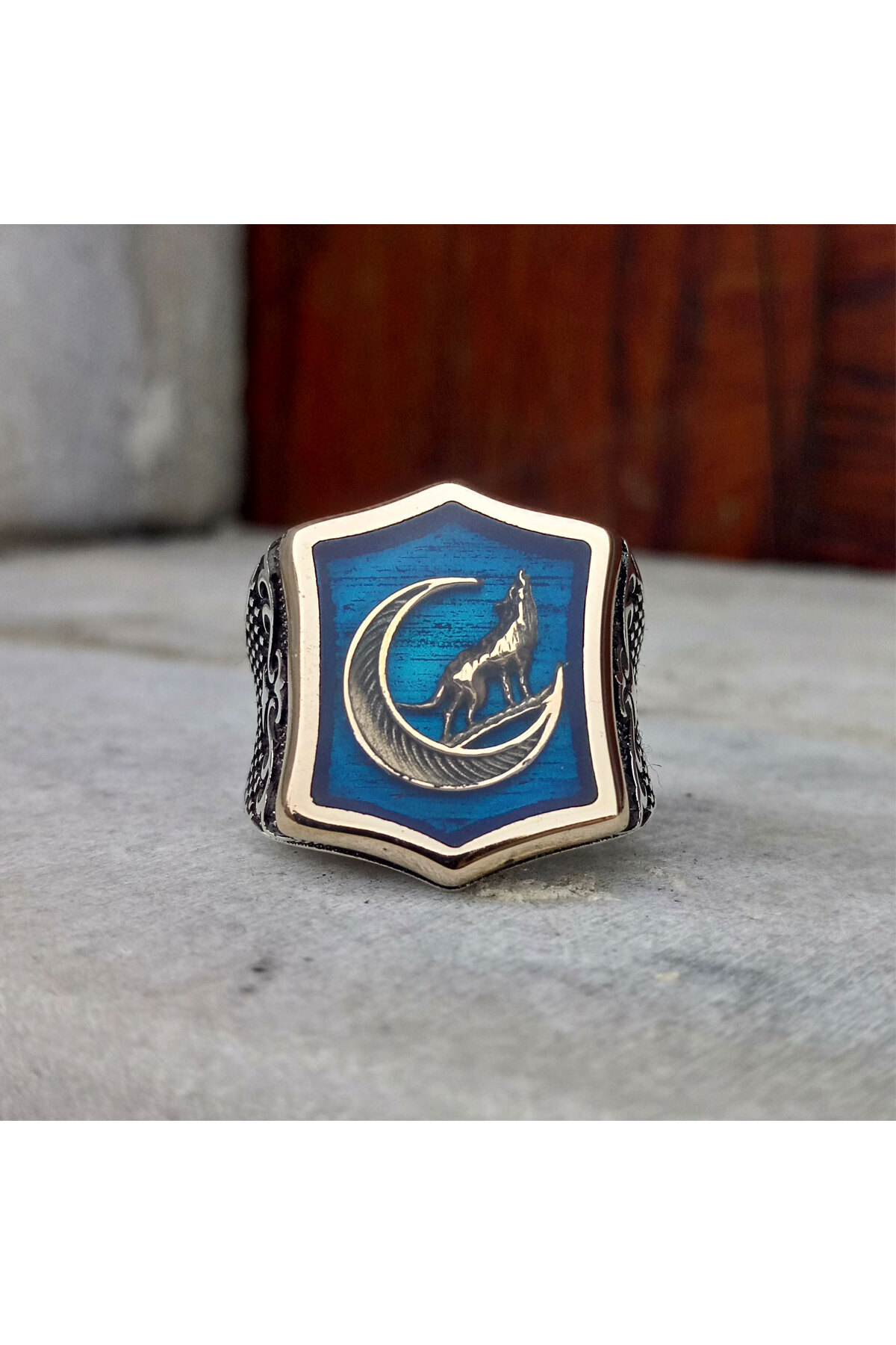 Firuze Taşlı Bozkurt Erkek Gümüş Yüzük Firuze Taşlı Bozkurt Erkek Gümüş Yüzük fk001088 Standart
