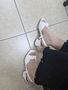 Düğüm Detay Topuklu Sandalet Beyaz Düğüm Detay Topuklu Sandalet Beyaz Bores 40