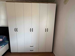 Rani Ba113 Geniş Gardırop Elbise Dolabı 6 Kapaklı 2 Çekmeceli 5 Raflı 3 Askılı Sepet Ceviz - Beyaz Rani Ba113 Geniş Gardırop Elbise Dolabı 6 Kapaklı 2 Çekmeceli 5 Raflı 3 Askılı Sepet Ceviz - Beyaz 2337 210 cm