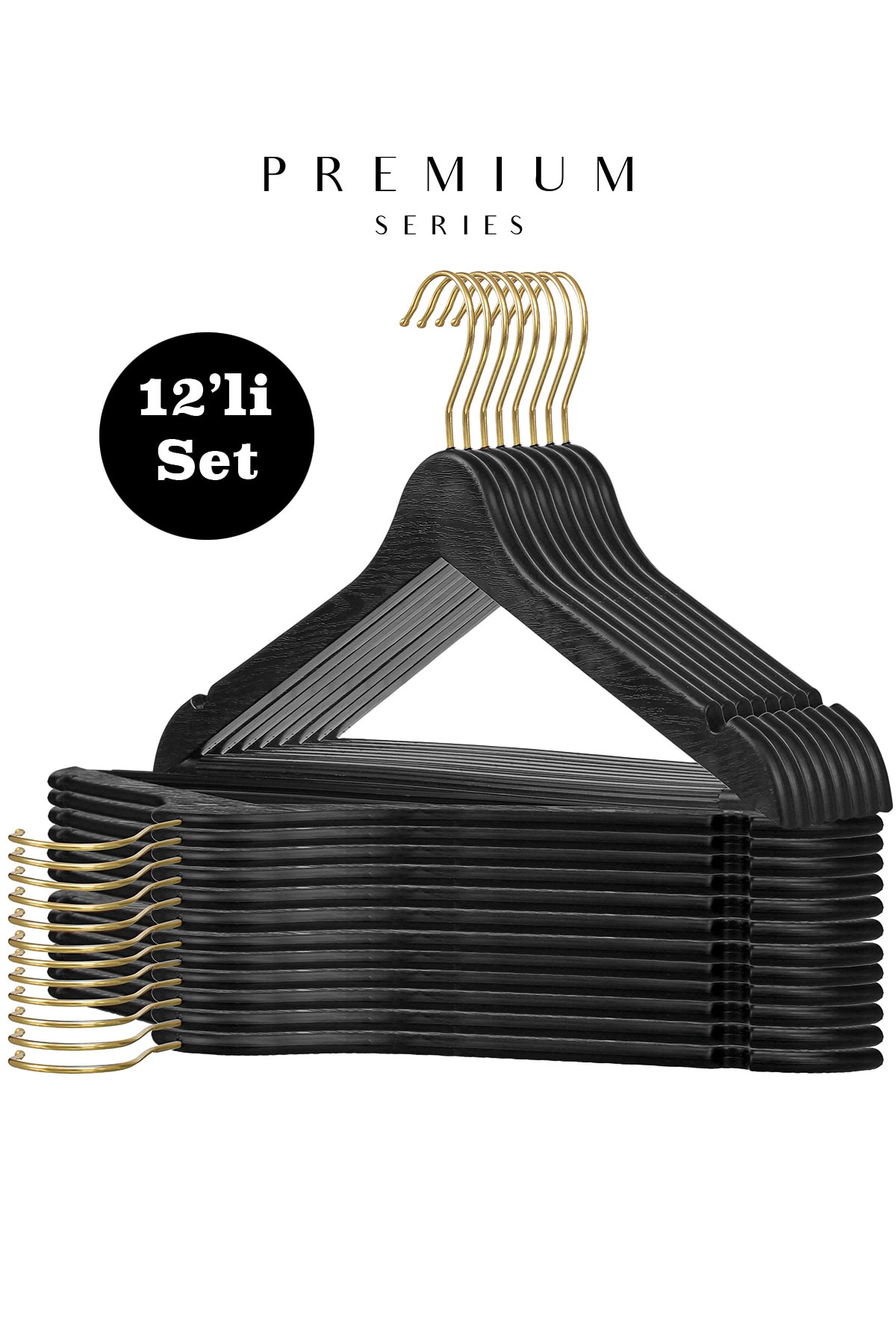 Askı Gömlek Ve Pantolon Askısı (12 Adet) Gold Kancalı Özel Seri Siyah Renk Askı Gömlek Ve Pantolon Askısı (12 Adet) Gold Kancalı Özel Seri Siyah Renk TYC00480806040 تک سایز