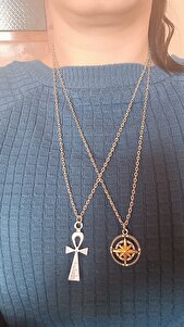 2'li Ankh Anahtarı - Nil'in Anahtarı Gümüş Kaplama Kolye Seti 2'li Ankh Anahtarı - Nil'in Anahtarı Gümüş Kaplama Kolye Seti 1113-1078-Z1 60 cm