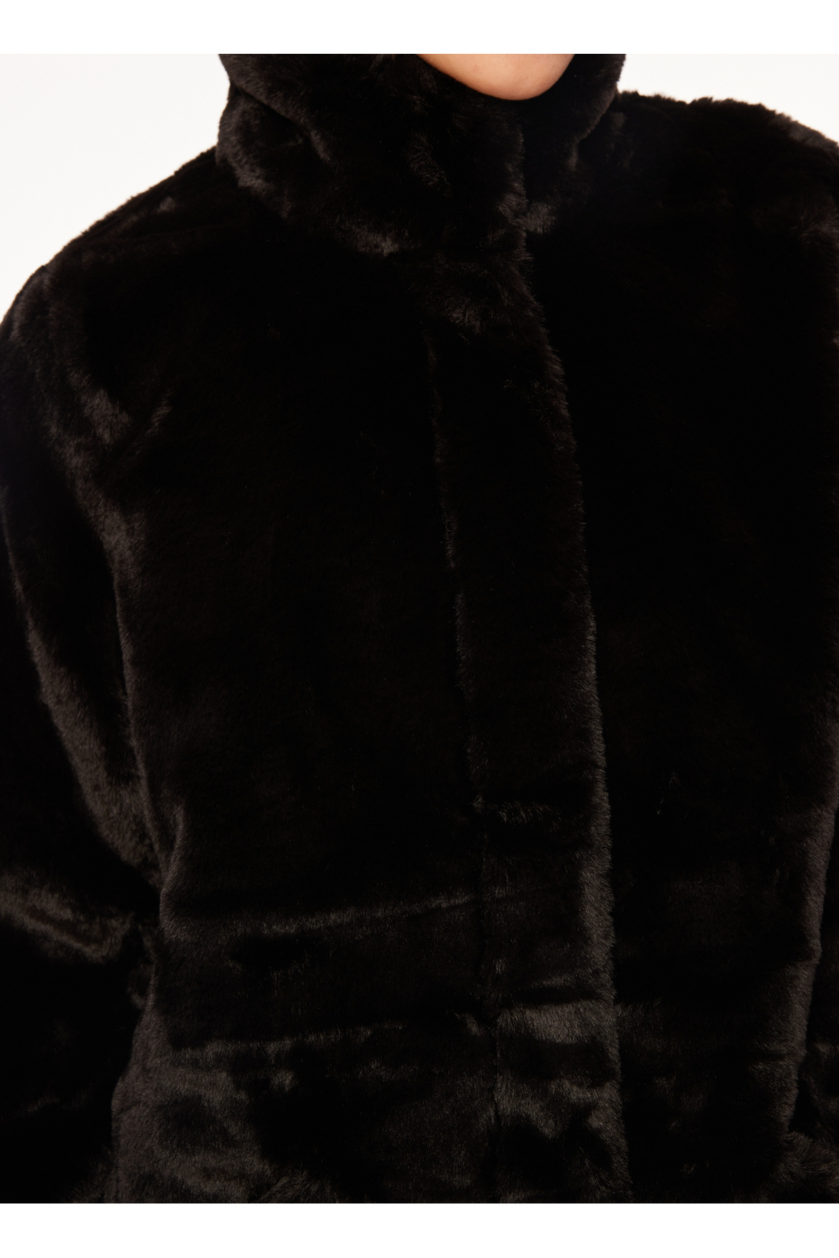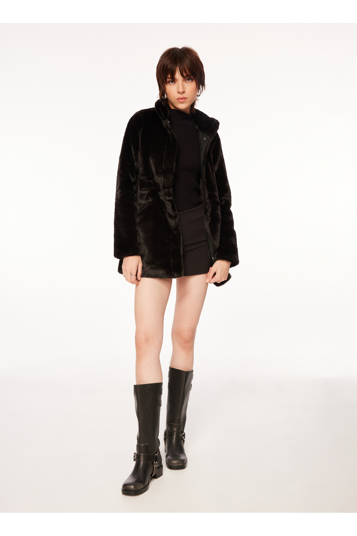 Siyah Kadın Dik Yaka Suni Kürk Kaban 15164600 Siyah Kadın Dik Yaka Suni Kürk Kaban 15164600 XL