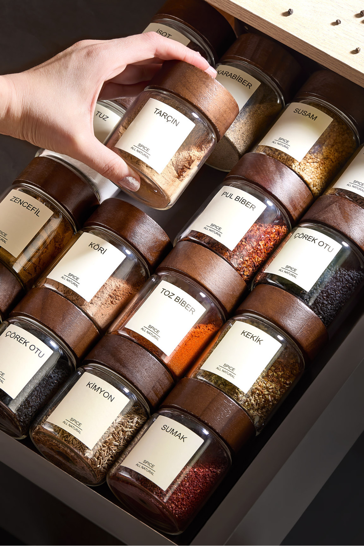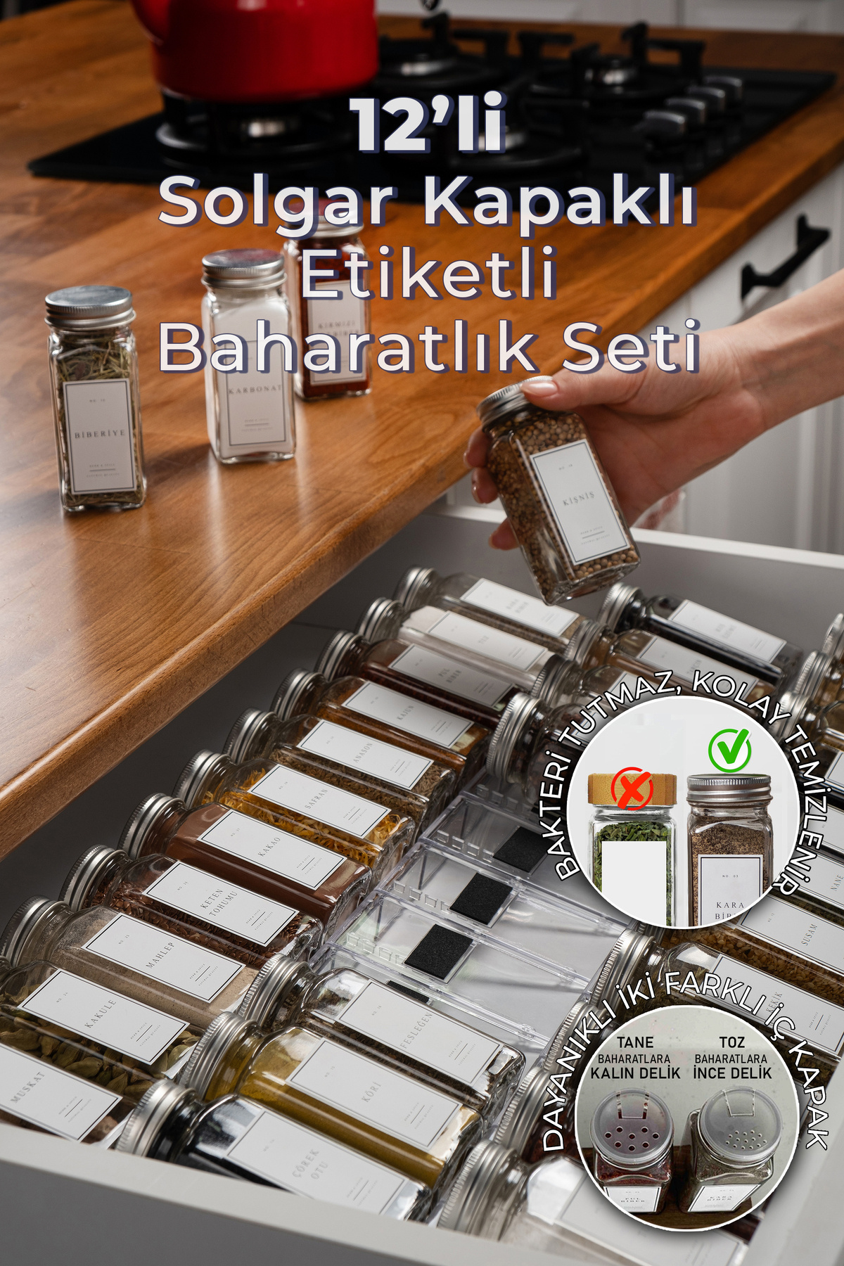 12'li Etiketli 250 ml Metal Vakumlu Kapaklı Borosilikat Cam Baharatlık Saklama Kabı Seti 12'li Etiketli 250 ml Metal Vakumlu Kapaklı Borosilikat Cam Baharatlık Saklama Kabı Seti 09091802090103 تک سایز