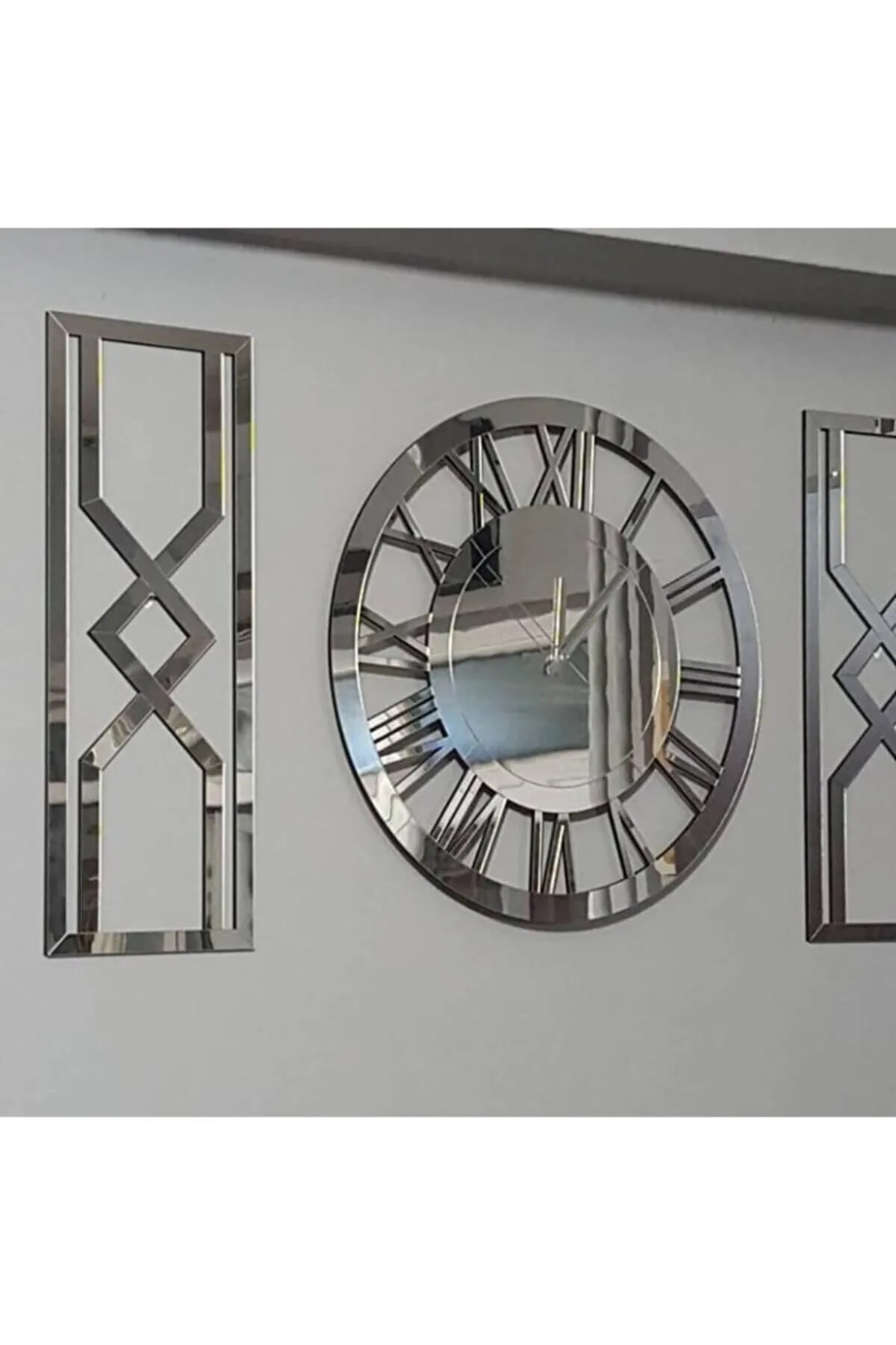 Roma Rakamlı Modern & Şık Tasarım Mdf Üzeri Gümüş Aynalı Pleksi 3lü Duvar Saat Seti Roma Rakamlı Modern & Şık Tasarım Mdf Üzeri Gümüş Aynalı Pleksi 3lü Duvar Saat Seti MTRGUMUS تک سایز