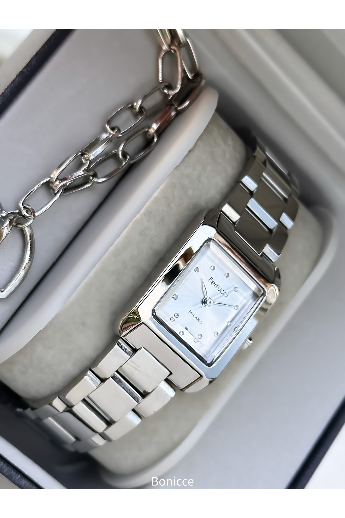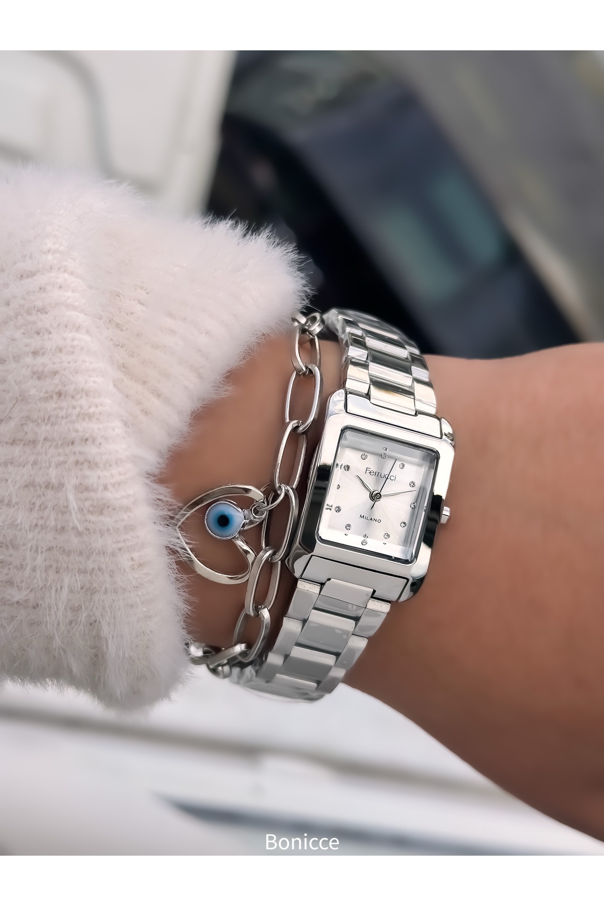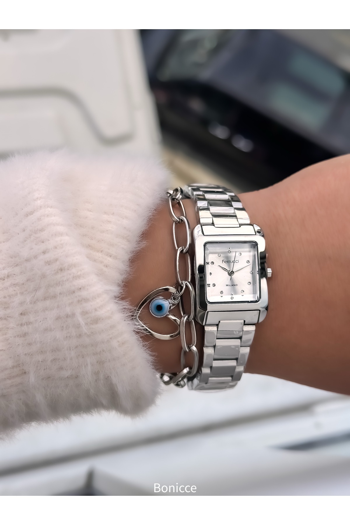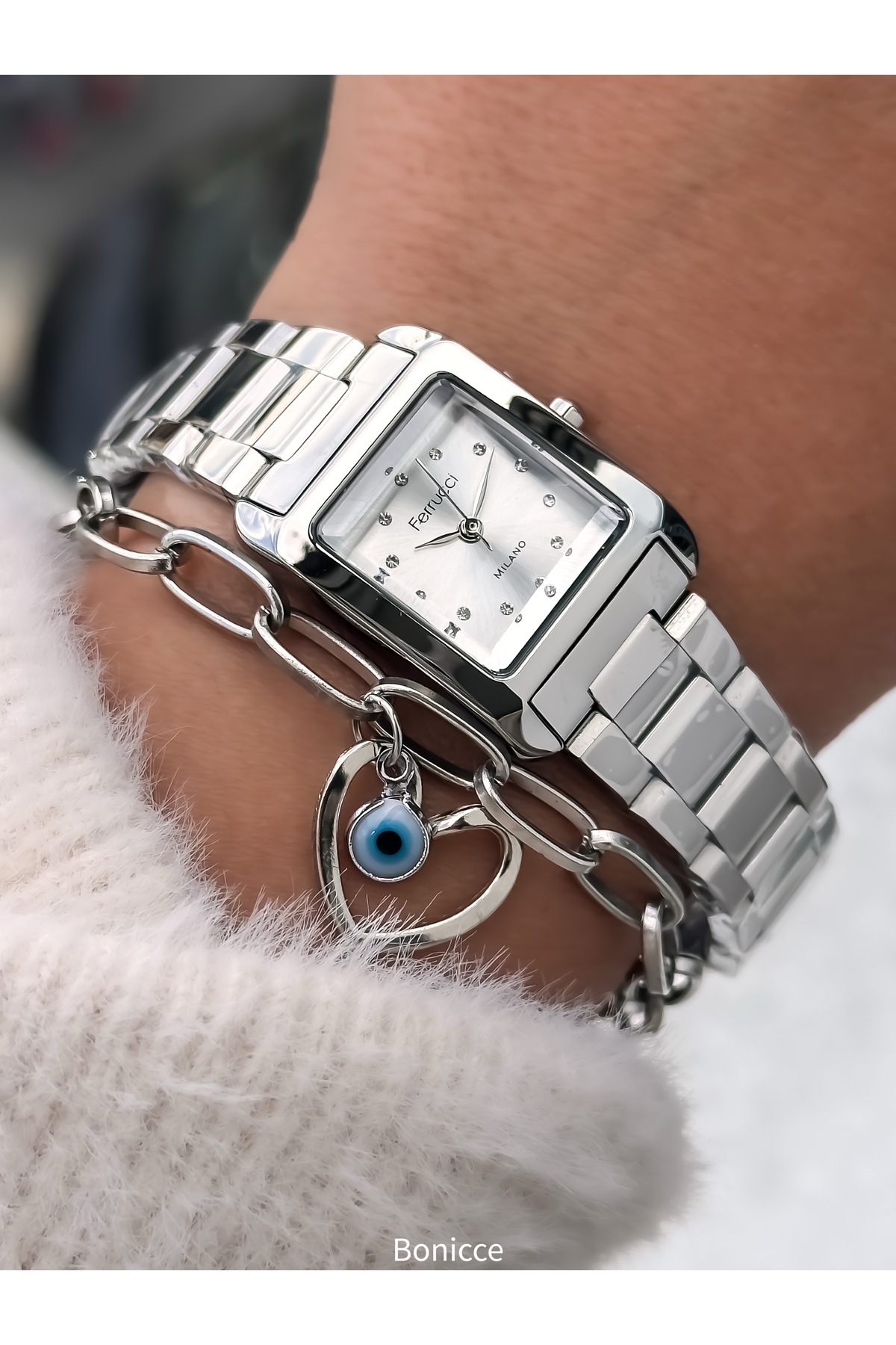 Gümüş Renk Çelik Kordon Su Geçirmez Garantili Kadın Kol Saati+bileklik Gümüş Renk Çelik Kordon Su Geçirmez Garantili Kadın Kol Saati+bileklik RTTQNC9S تک سایز