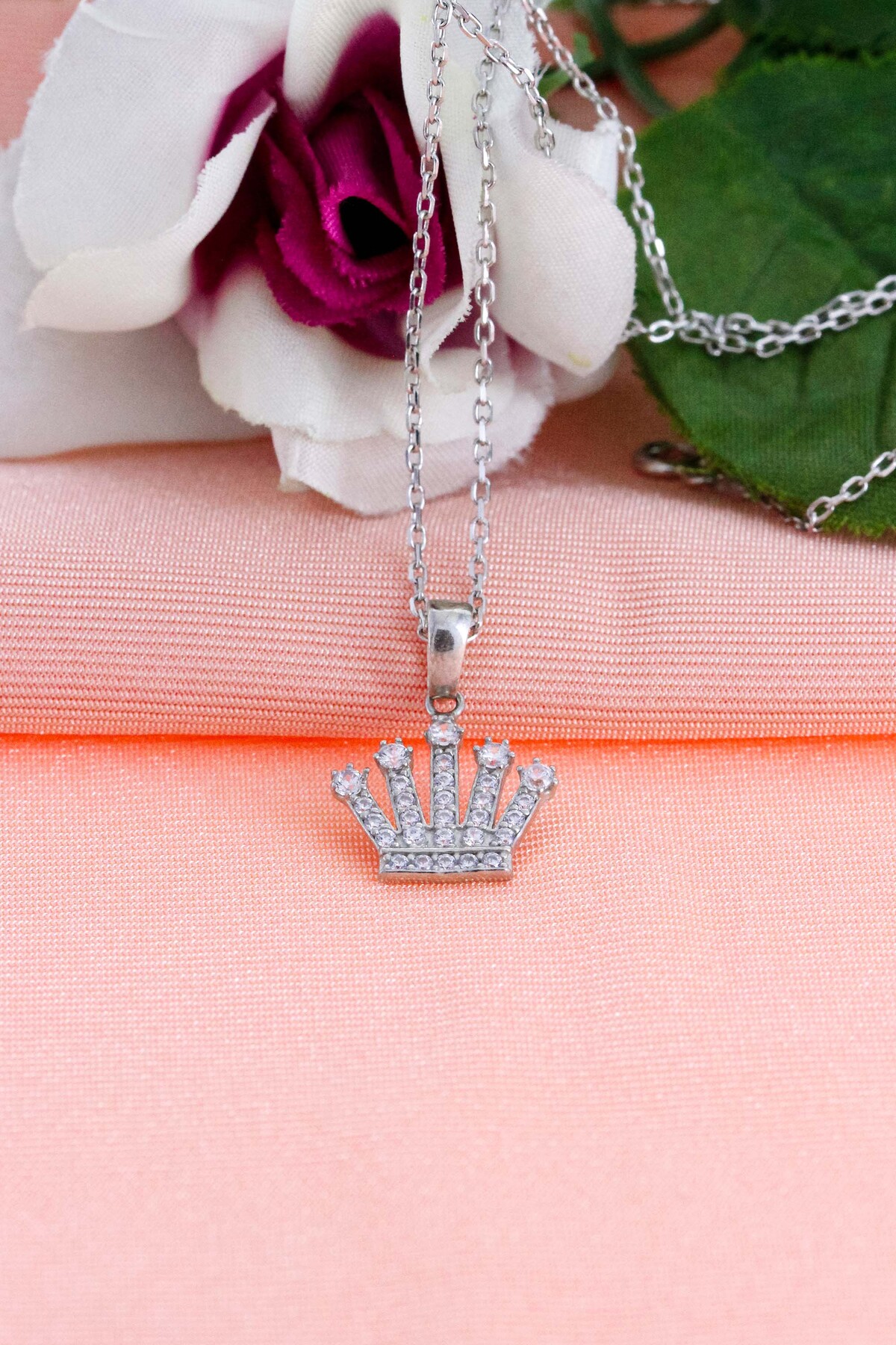 Zirconia Taşlı Gümüş Taç Kolye Zirconia Taşlı Gümüş Taç Kolye SWK0100 تک سایز