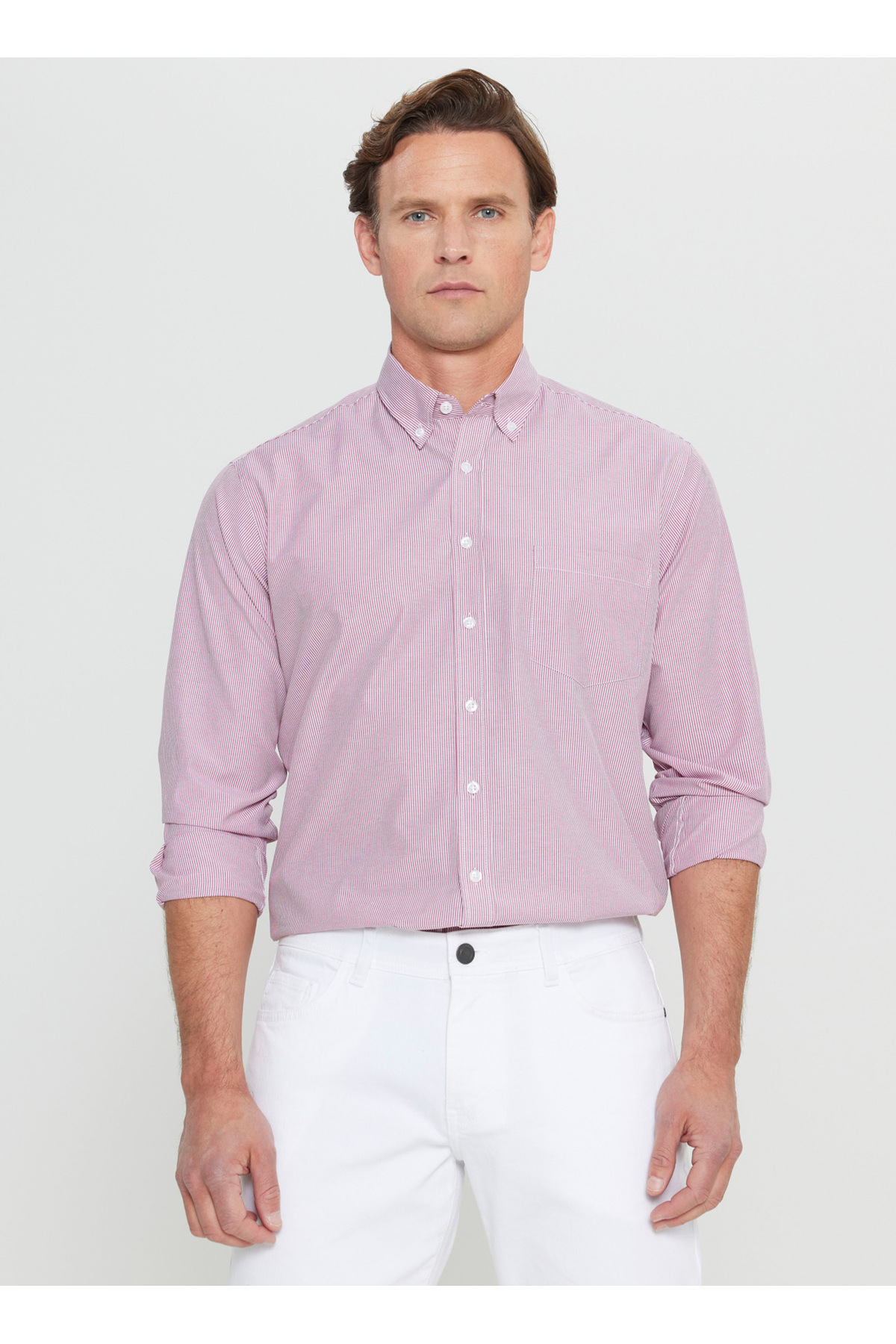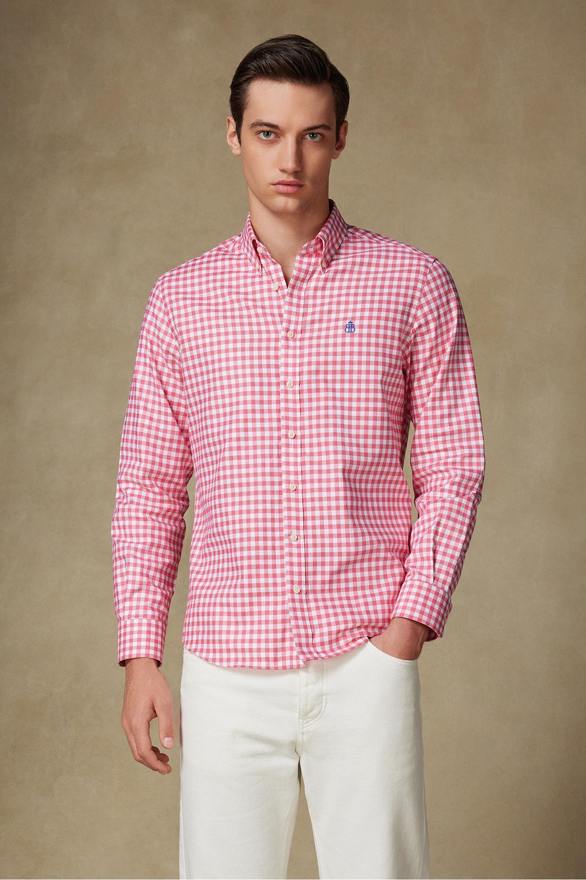 Erkek Kırmızı Nokta Desenli Hakim Yaka Yarım Patlı Kısa Kollu Gömlek Erkek Kırmızı Nokta Desenli Hakim Yaka Yarım Patlı Kısa Kollu Gömlek BUC21Y-4300602-01 2XL