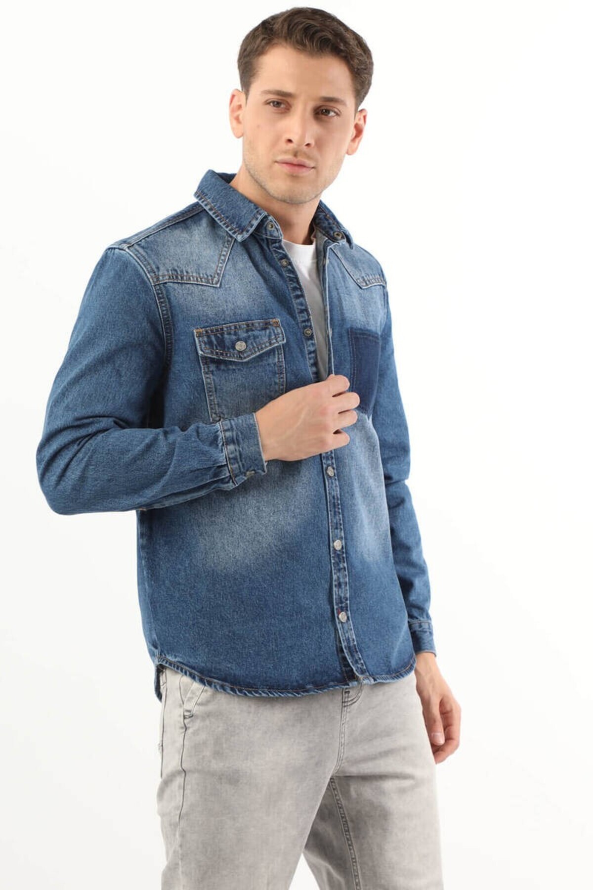 Erkek Cep Yıkamalı Jean Gömlek Koyu Mavi Erkek Cep Yıkamalı Jean Gömlek Koyu Mavi 22MP0315-640 2XL