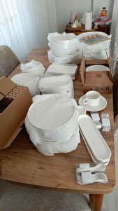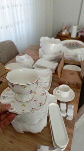 Ürün mükemmel durumda geldi. Her parça dahildi ve üründen çok memnunum! Tüm ürünler tarif edildiği gibi ve fotoğraflarda görüldüğü gibi. Yemek takımı servis tabaklarından farklı bir marka olmasına rağmen, renkler mükemmel uyumlu. Tek geri bildirimim, kahve fincanlarının altlarının çok pürüzlü ve birçoğunun alt kısmında yer yer çatlak olması. Kullanırken görünmediği için benim için bir sorun değil, ancak fiyatı göz önüne alındığında çok daha iyi olabileceklerini düşünüyorum. Özellikle zamanla üzerlerinde durdukları tabaklara zarar verip çizecekleri için bu konuyu tedarikçinizle gözden geçirmenizi öneririm. Bu set biraz pahalı olduğu için, harika satıcımıza müşteri ilişkileri ve memnuniyeti için bir ipucu daha vermek istiyorum: Küçük bir hediye eklemeyi düşünebilirsiniz ;) Geçtiğimiz haftalarda yeni evimi doldurmak için Trendyol'dan birçok şey sipariş ettim ve en ucuz ürünler bile küçük bir teşekkür hediyesi ile geldi. Belki tuz ve biberlikler? Böyle küçük bir hediye bile bir müşteriyi geri getirip daha fazla alışveriş yapmasını sağlayabilir :) Yine de 5 yıldız veriyorum! Bu, harika kalitede güzel bir set ve ailemi davet edip bu yemek takımıyla harika bir kahvaltının tadını çıkarmak için sabırsızlanıyorum. Teşekkür ederim!