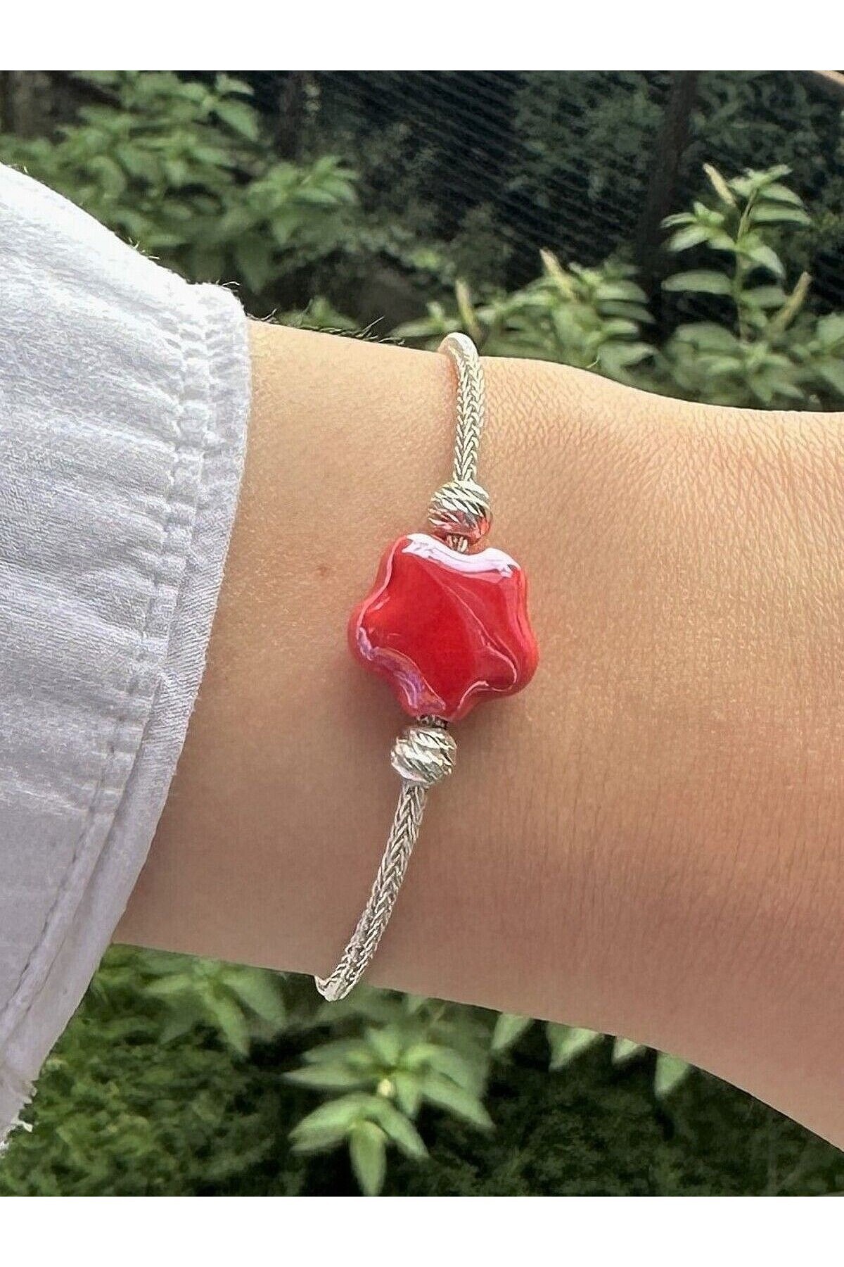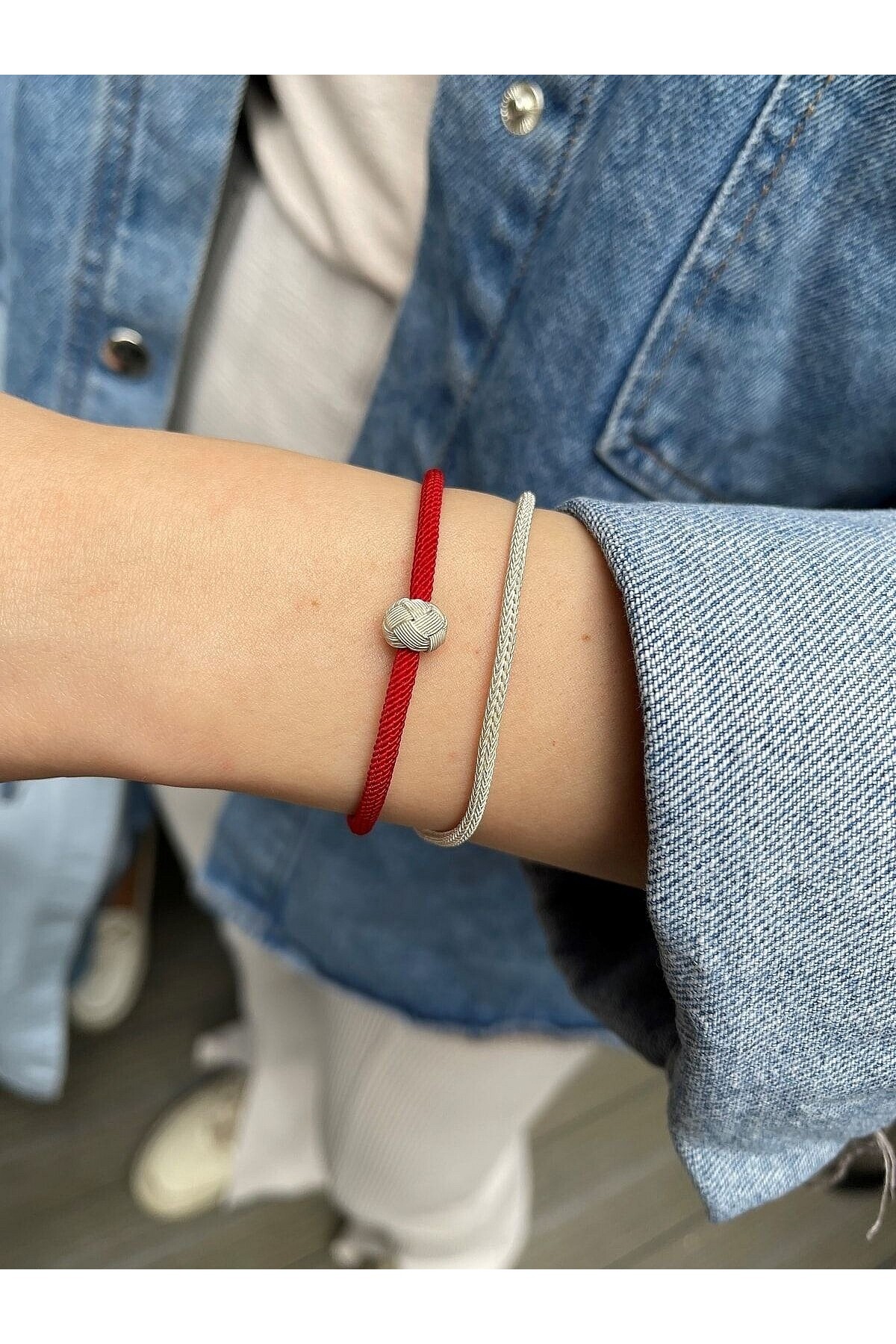 Gümüş Kazaziye Top Detaylı Bordo Bileklik Gümüş Kazaziye Top Detaylı Bordo Bileklik BIL310GU 20 cm