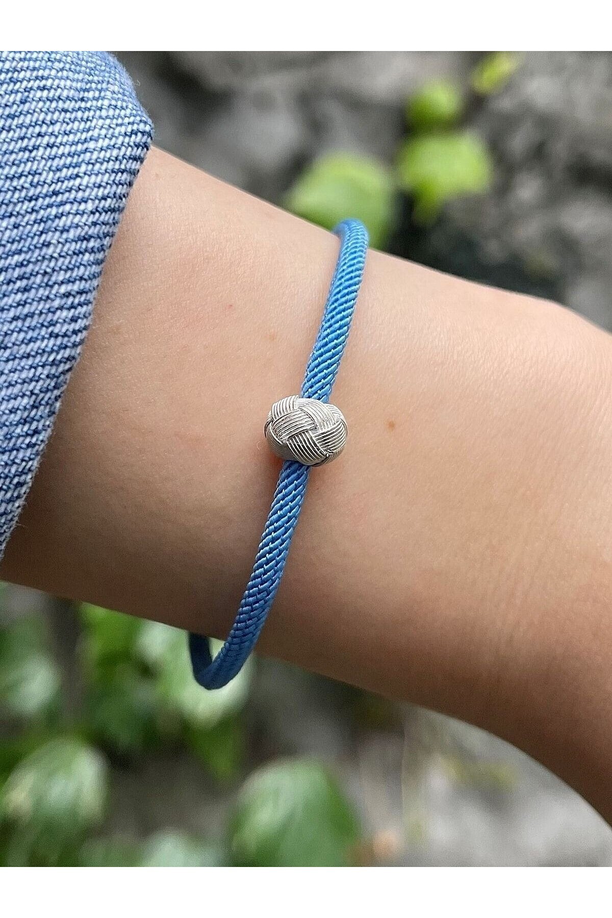Gümüş Kazaziye Top Detaylı Açık Mavi Bileklik Gümüş Kazaziye Top Detaylı Açık Mavi Bileklik BIL310GU 20 cm