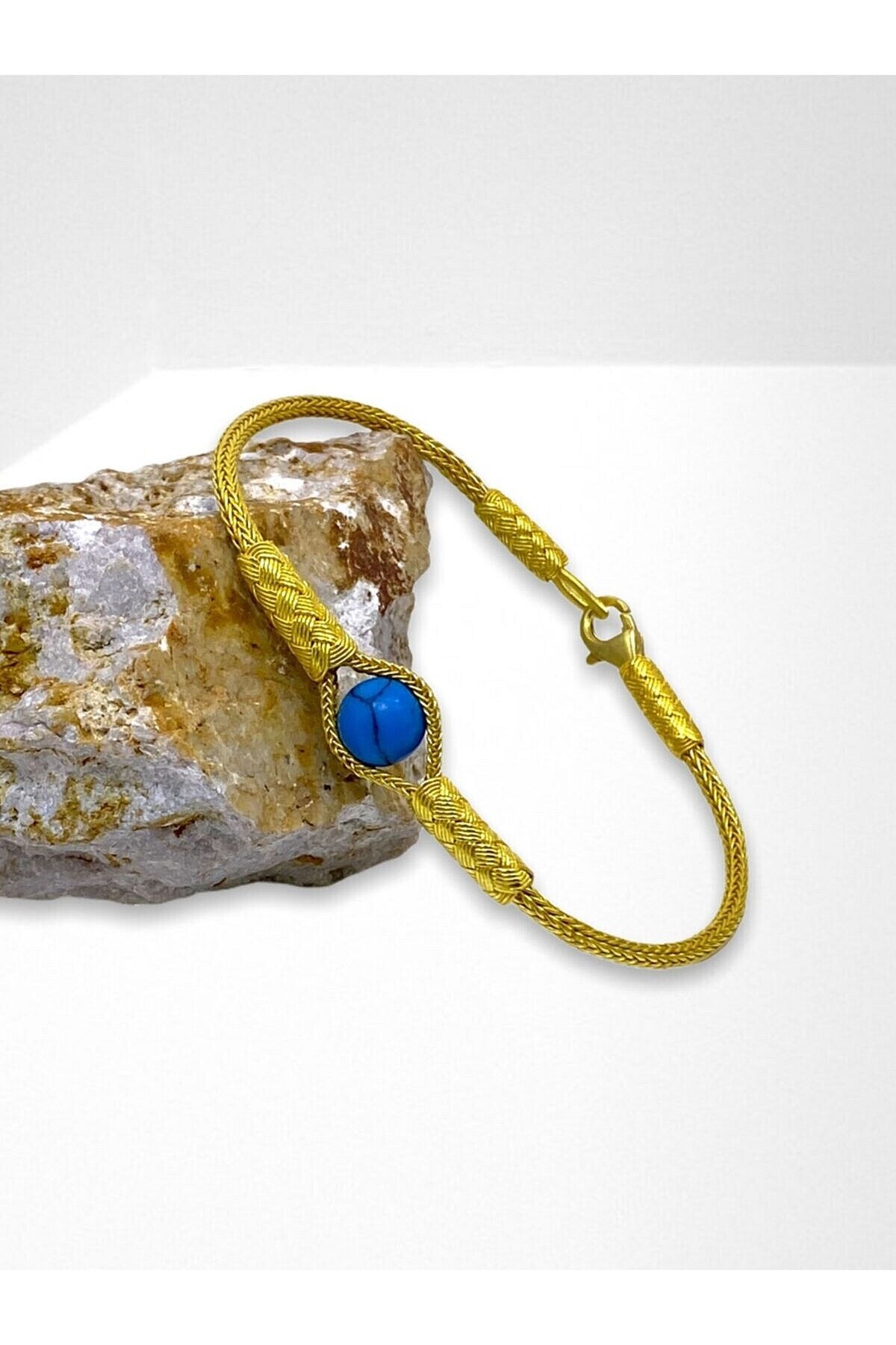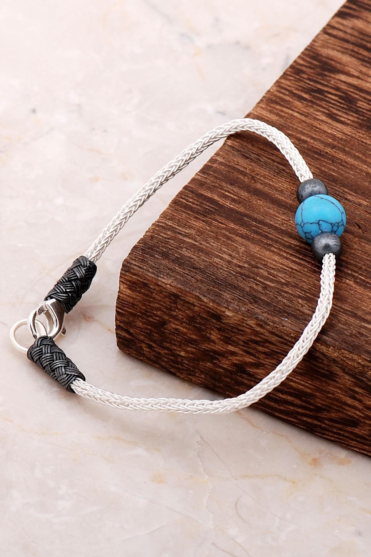 Gümüş Kazaziye Top Detaylı Turkuaz Bileklik Gümüş Kazaziye Top Detaylı Turkuaz Bileklik BIL310GU 20 cm