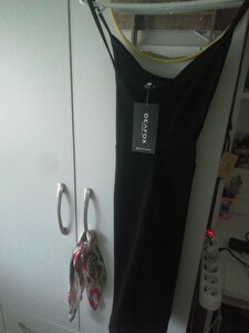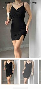 Siyah Kruvaze Yaka Yırtmaçlı Krep Kumaş Elbise Siyah Kruvaze Yaka Yırtmaçlı Krep Kumaş Elbise DFX581816 L