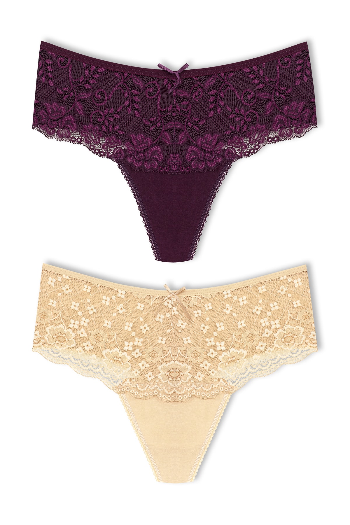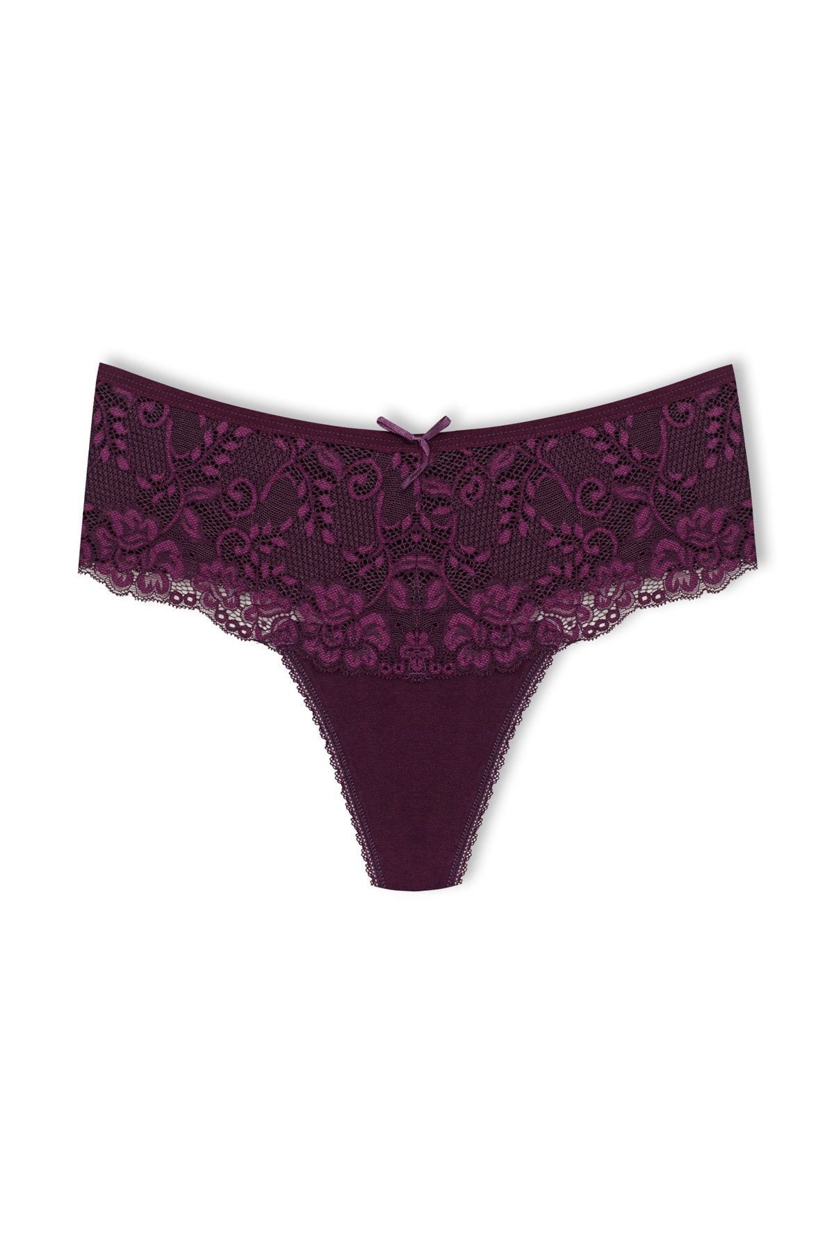 Mor Pamuklu Paçası Ve Beli Sur Dantel Brazil Kadın Külot Mor Pamuklu Paçası Ve Beli Sur Dantel Brazil Kadın Külot TA1330 XL