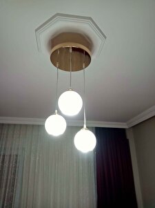 Sarkıt 3'lü Gold Kasalı Beyaz Opak Camlı Avize Sarkıt 3'lü Gold Kasalı Beyaz Opak Camlı Avize 160504001242 تک سایز