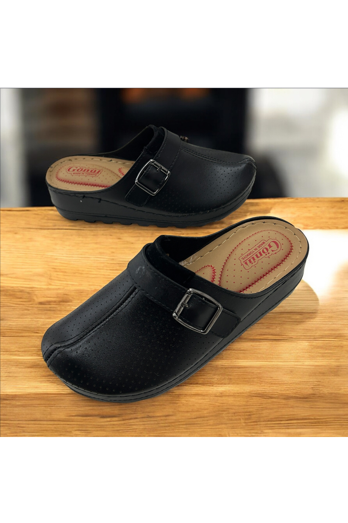 Kadın Içi-dışı Hakiki Deri Ortopedik Masaj Tabanlı Önü Kapalı Siyah Delikli Terlik Kadın Içi-dışı Hakiki Deri Ortopedik Masaj Tabanlı Önü Kapalı Siyah Delikli Terlik TRLK100021 40