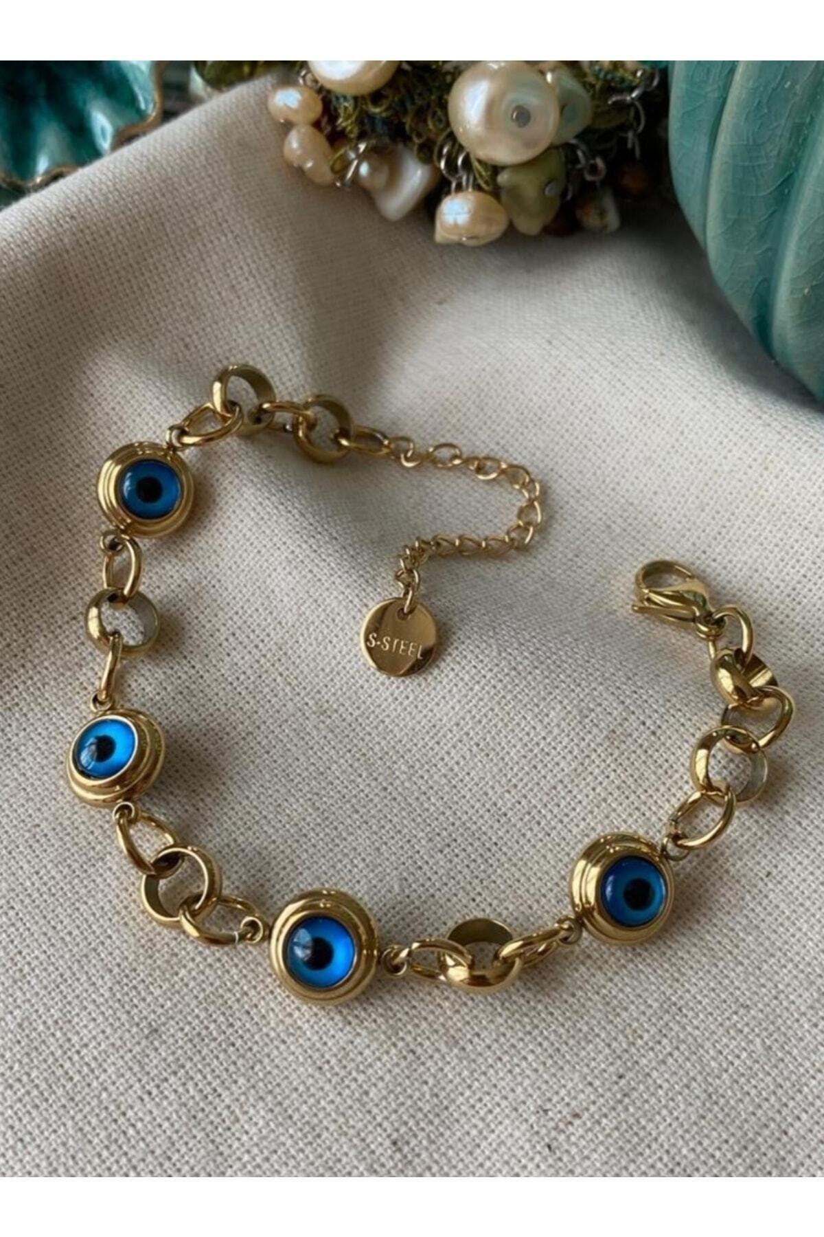 Nazarlı Taşlı Altın Bileklik Büyük Boy Nazarlı Taşlı Altın Bileklik Büyük Boy BLK000032 تک سایز
