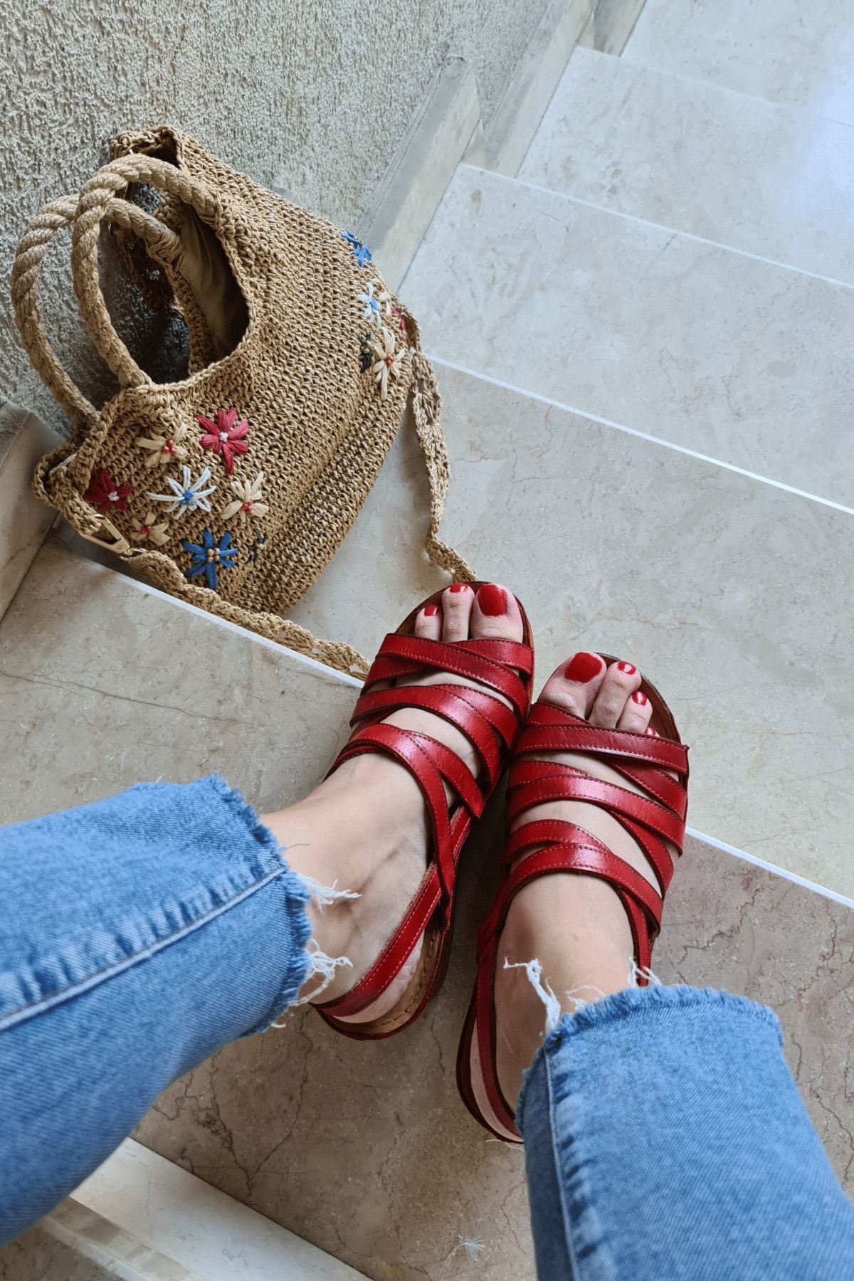 Kalkan- Kırmızı Lazerli Hakiki Deri Sandalet Kalkan- Kırmızı Lazerli Hakiki Deri Sandalet 2271 42