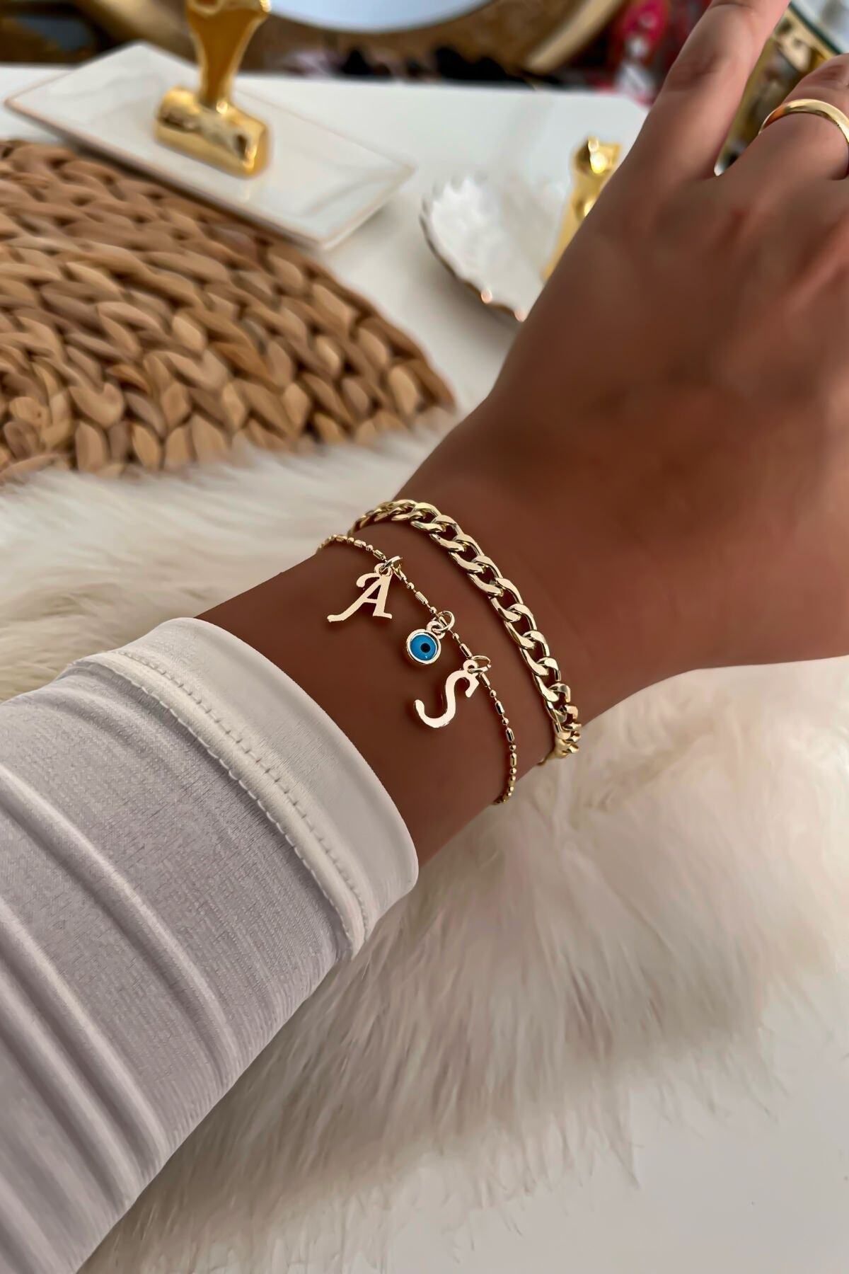 Harfli Ikili Zincir Bileklik 1 Harfli Ikili Zincir Bileklik 1 TB22-THB-0001 20 cm