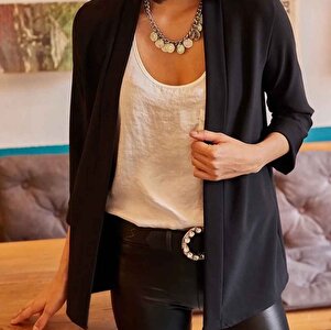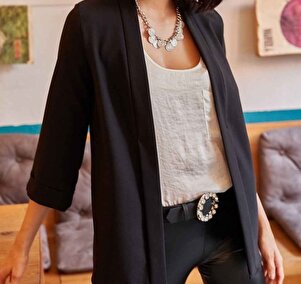 Kadın Siyah Şal Yaka Atlas Ceket CKT-19000139 Kadın Siyah Şal Yaka Atlas Ceket CKT-19000139 XL