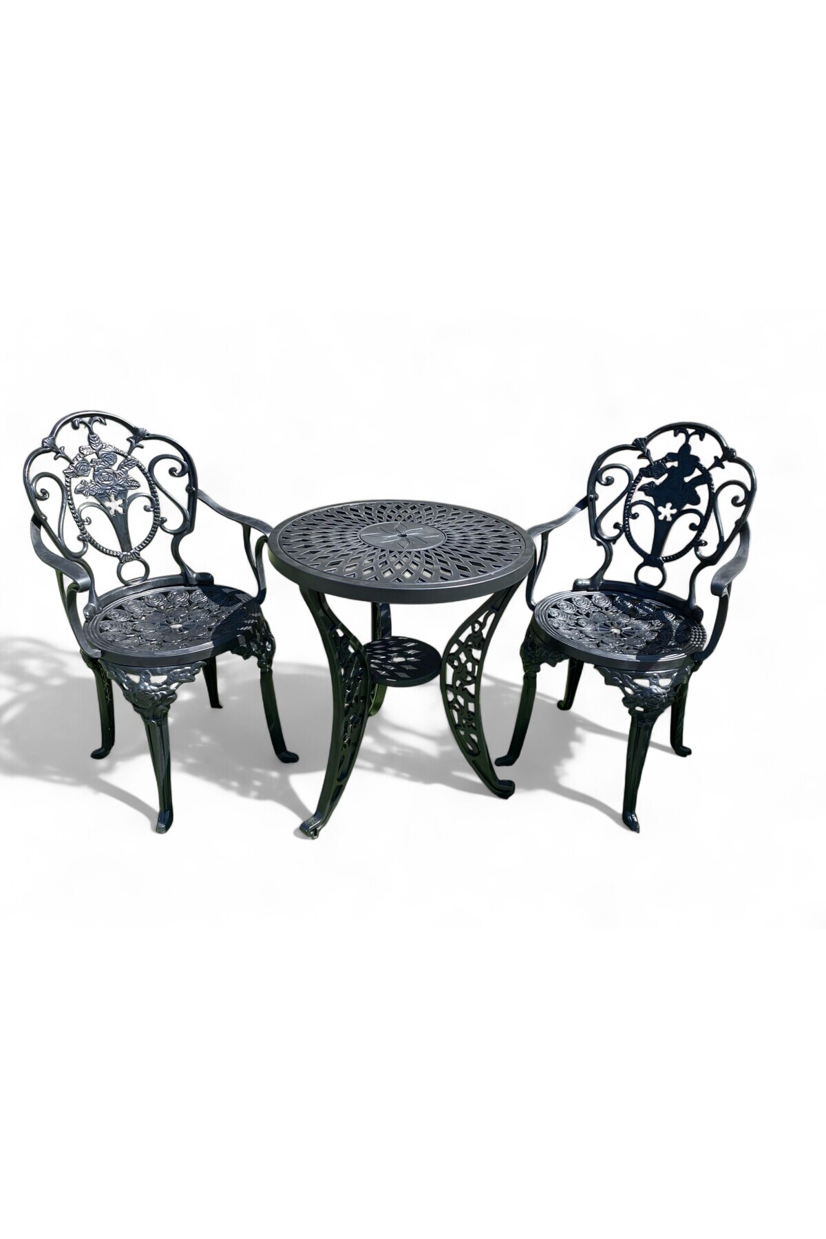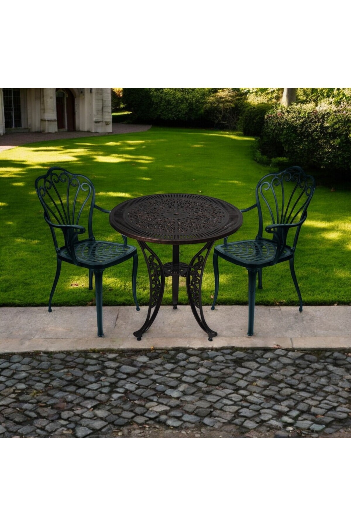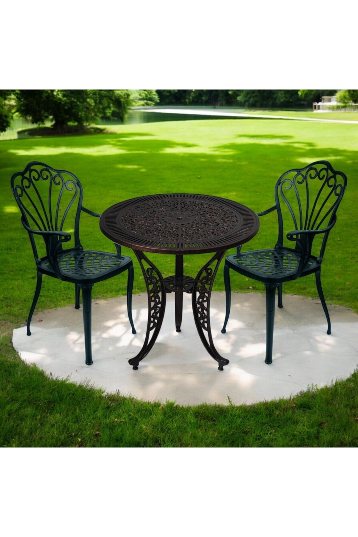 Aluminyum Döküm Bahçe Balkon Oturma Grubu 3 Parça 2 Sandalye 1 Masa Aluminyum Döküm Bahçe Balkon Oturma Grubu 3 Parça 2 Sandalye 1 Masa GNN.FU.SET1 تک سایز