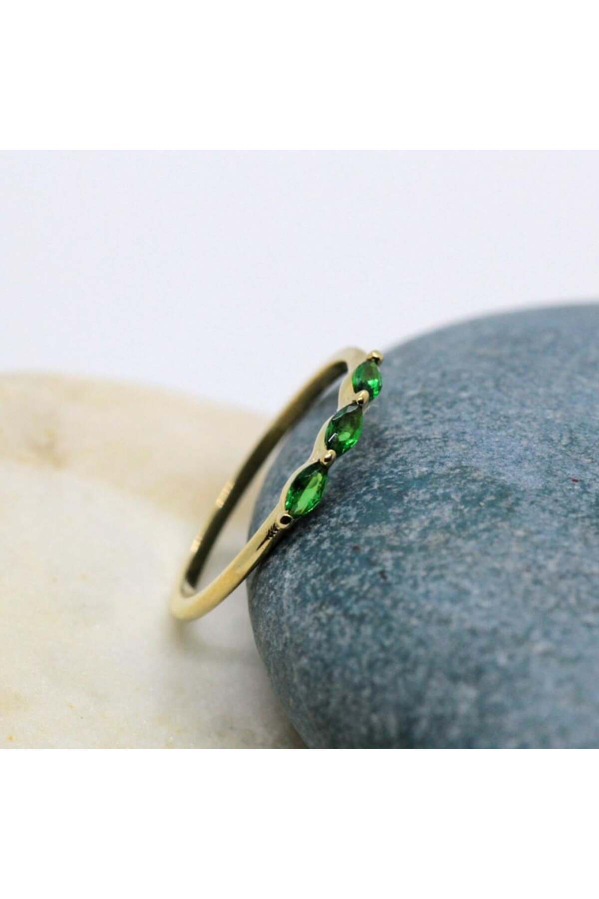 Tria Altın Yüzük - 14 Ayar Altın Tria Mekik Zümrüt Yeşili Taşlı Minimal Kadın Yüzük - Eşe Hediyelik Tria Altın Yüzük - 14 Ayar Altın Tria Mekik Zümrüt Yeşili Taşlı Minimal Kadın Yüzük - Eşe Hediyelik HNKYUZ2245 18