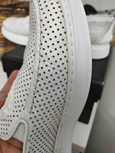 Erkek Beyaz Baskılı Rahat Kalıp Hakiki Deri Loafer Erkek Beyaz Baskılı Rahat Kalıp Hakiki Deri Loafer TBV90 47