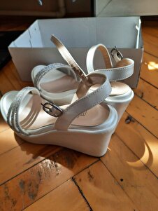 Kadın Yazlık Sedef Dolgu Topuklu Taş I?şlemeli Sandalet Kadın Yazlık Sedef Dolgu Topuklu Taş I?şlemeli Sandalet Bayan Dolgu Topuklu Taşlı Sandalet 40