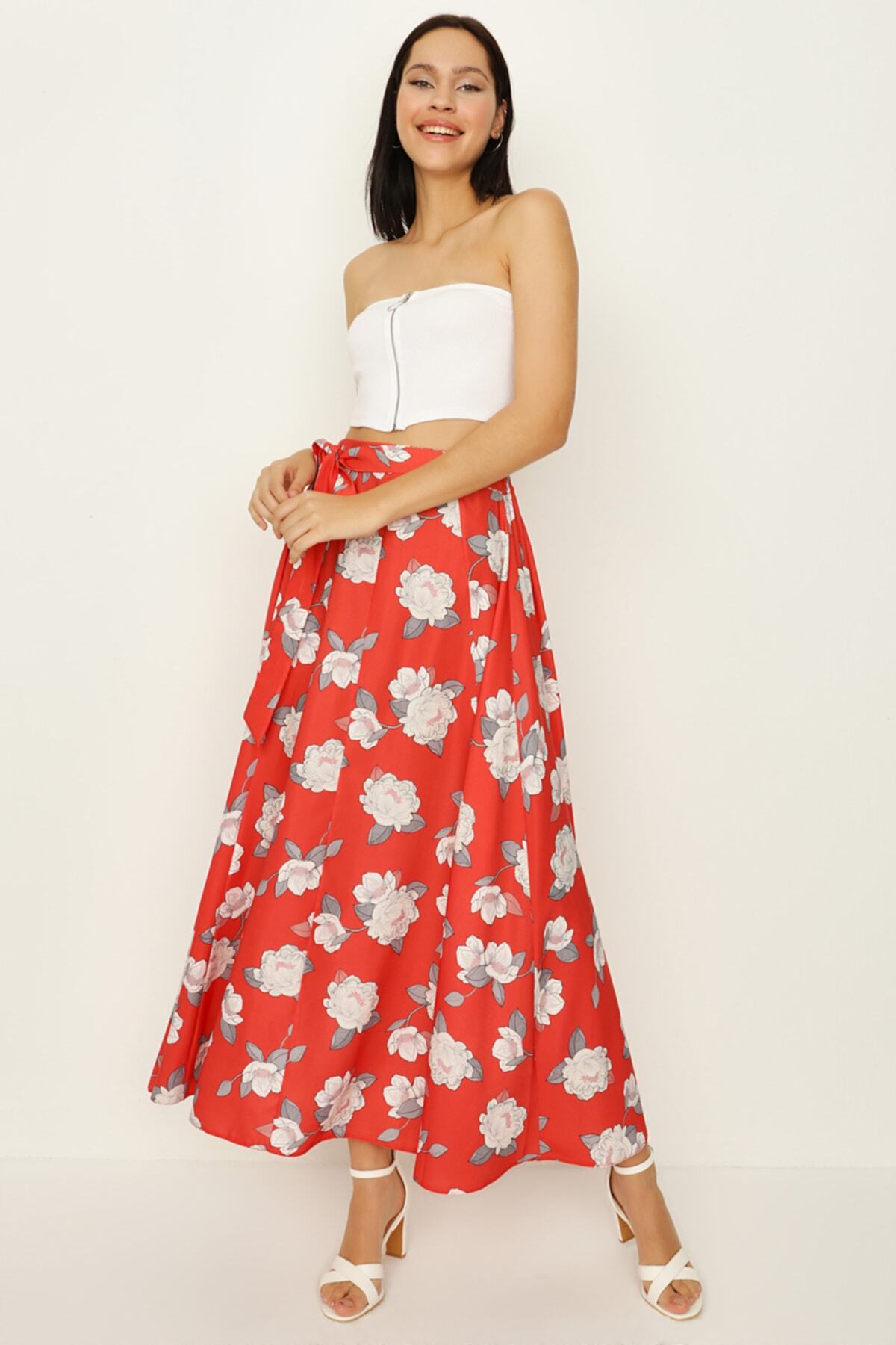 Kadın Mavi Mavi Desenli Kuşaklı Volanlı Uzun Etek Kadın Mavi Mavi Desenli Kuşaklı Volanlı Uzun Etek S055/0903/002 42