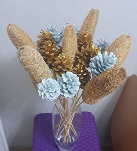 7Li Çam Kozalak Bambu Saplı Uçuk Mavi 7Li Çam Kozalak Bambu Saplı Uçuk Mavi YPCCK-YCK-320-2 تک سایز