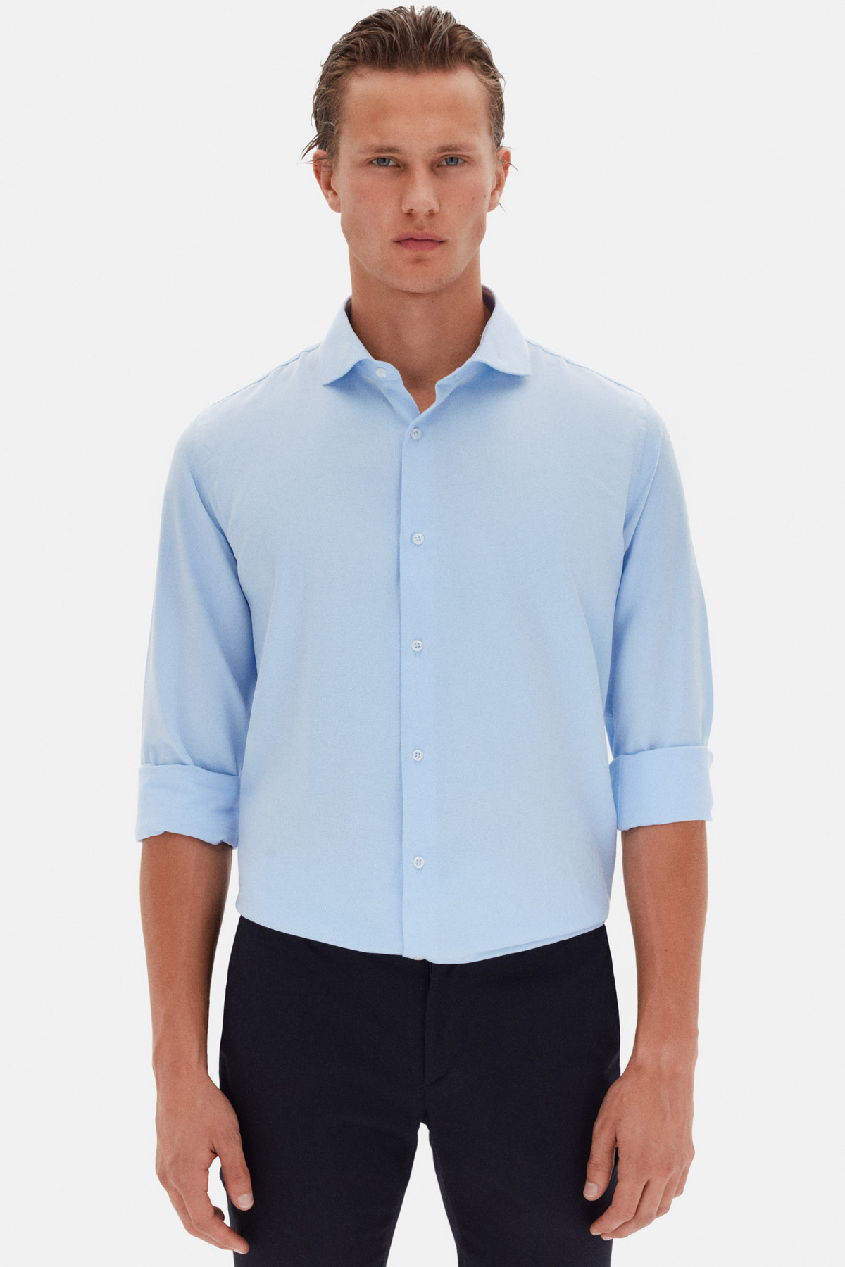 Ds Damat Slim Fit Açık Mavi İtalyan Yaka Armürlü Uzun Kollu Kolay Ütülenebilir Nefes Alan Dört Ds Damat Slim Fit Açık Mavi İtalyan Yaka Armürlü Uzun Kollu Kolay Ütülenebilir Nefes Alan Dört 2HF02ORT3185 2XL