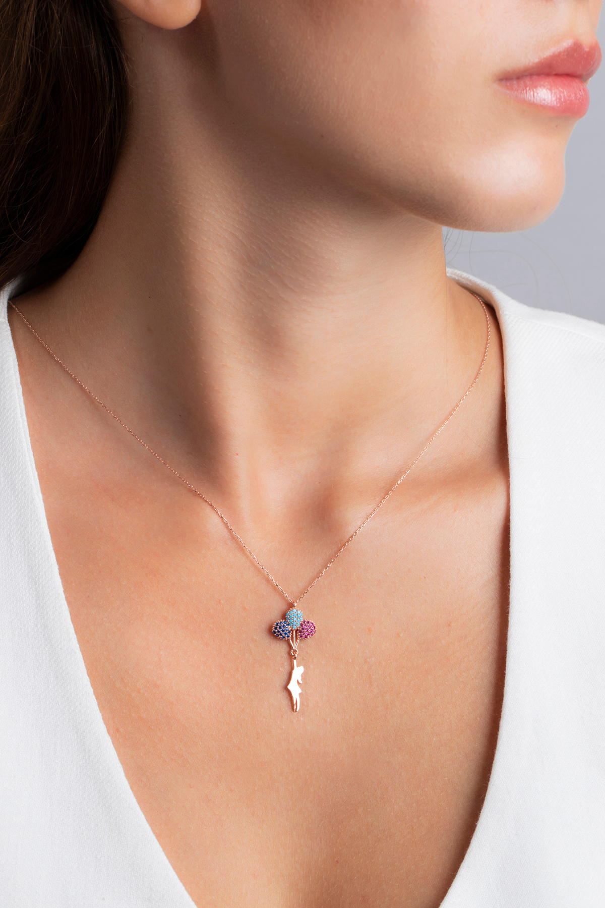 Uçan Balon Figürlü Rose Kaplama 925 Ayar Gümüş Kolye Uçan Balon Figürlü Rose Kaplama 925 Ayar Gümüş Kolye PP2035 تک سایز