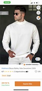 Beyaz Balıkçı Yaka Sweatshırt 5301 Beyaz Balıkçı Yaka Sweatshırt 5301 XL