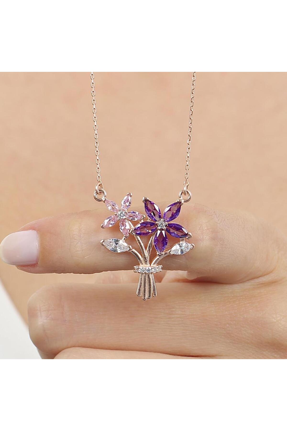 Pırlanta Montür Işıltılı Gül Rüyası Flowers Gümüş Kolye Pırlanta Montür Işıltılı Gül Rüyası Flowers Gümüş Kolye KL03185-MLV تک سایز