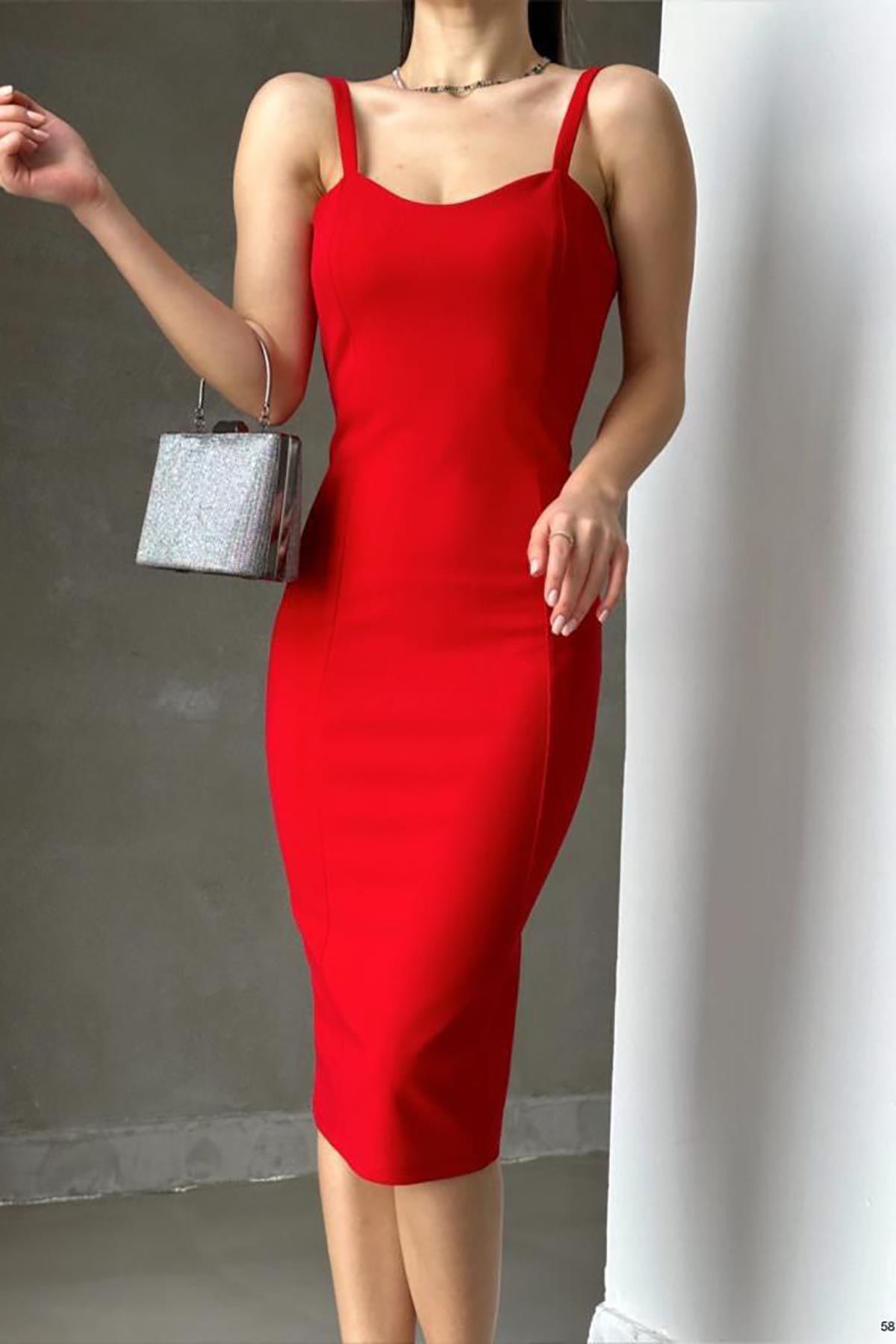 Kırmızı Kalın Askılı Krep Kumaş Kalp Yaka Elbise Kırmızı Kalın Askılı Krep Kumaş Kalp Yaka Elbise DFX582112 L