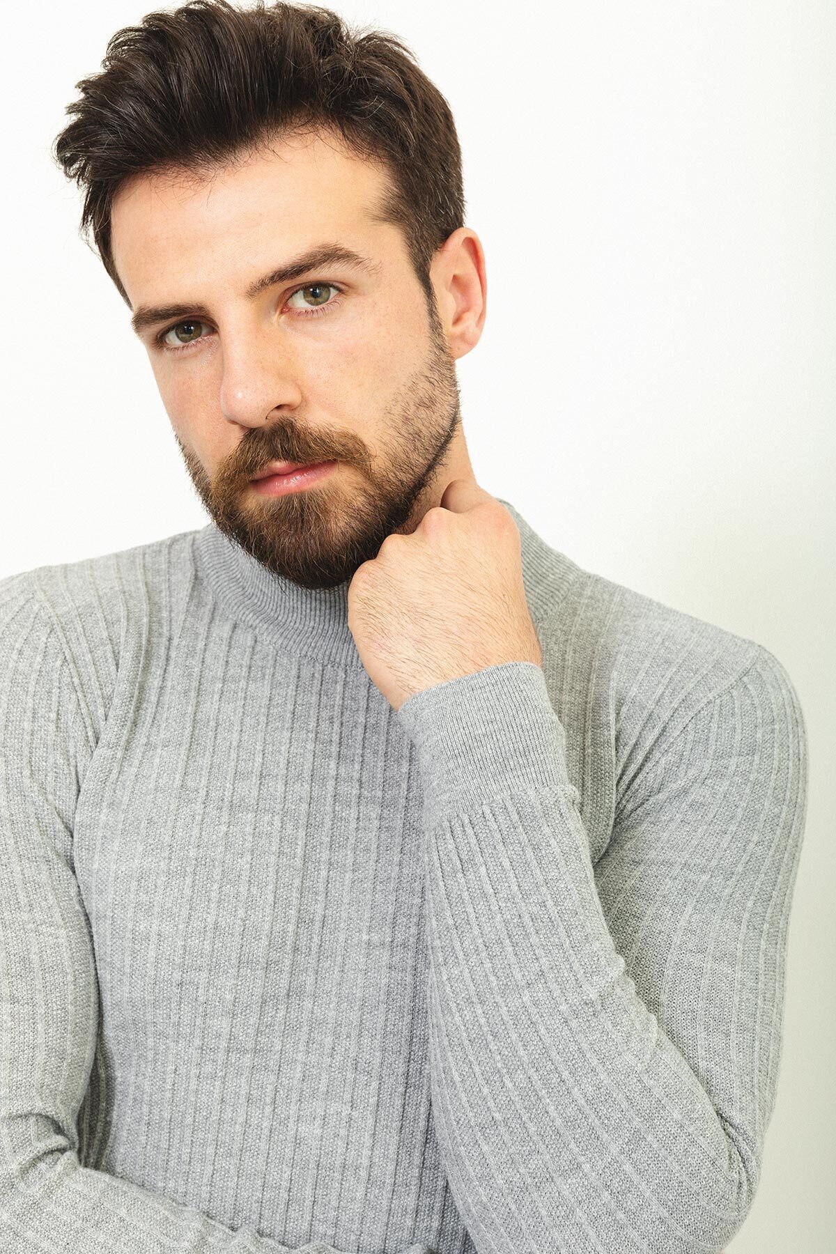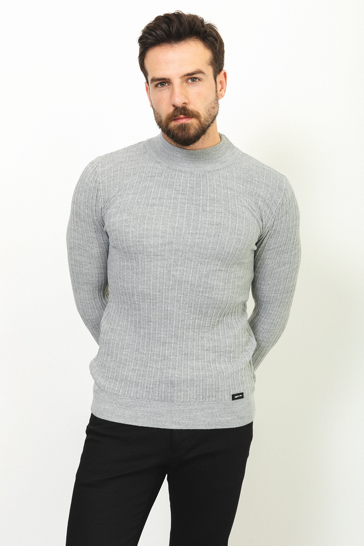 Çizgili Slim Fit Yarım Balıkçı Yaka Yün Erkek Kazak Gri - 11392.22K Çizgili Slim Fit Yarım Balıkçı Yaka Yün Erkek Kazak Gri - 11392.22K 2XL