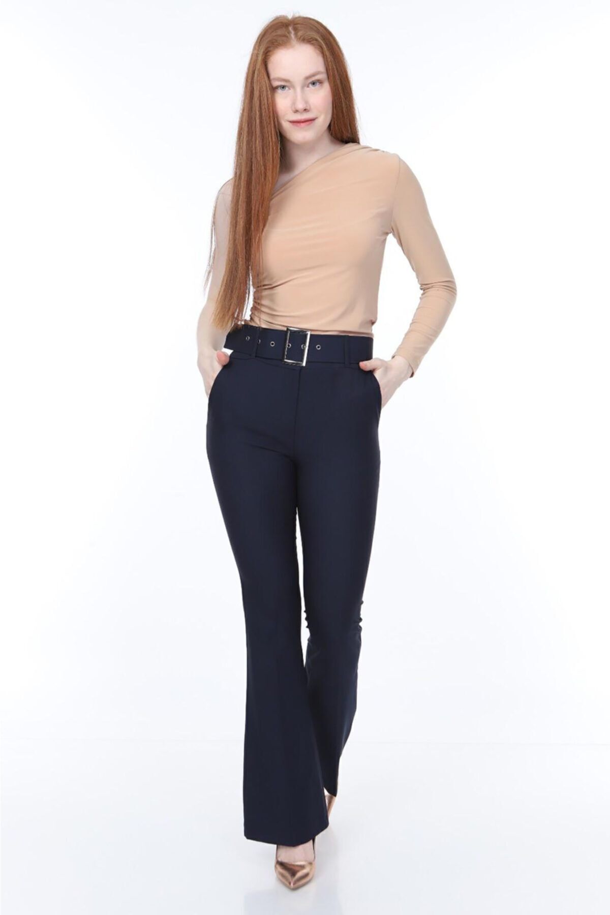 Yüksek Bel Kemer Detay Ispanyol Paça Düğme Detay Pantolon Yüksek Bel Kemer Detay Ispanyol Paça Düğme Detay Pantolon rc810102 2XL