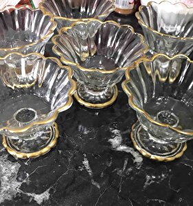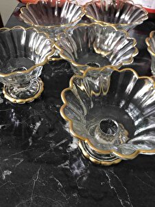6'lı Cam Ayaklı Yaldızlı Şekerlik Lokumluk Sunumluk 6'lı Cam Ayaklı Yaldızlı Şekerlik Lokumluk Sunumluk تک سایز