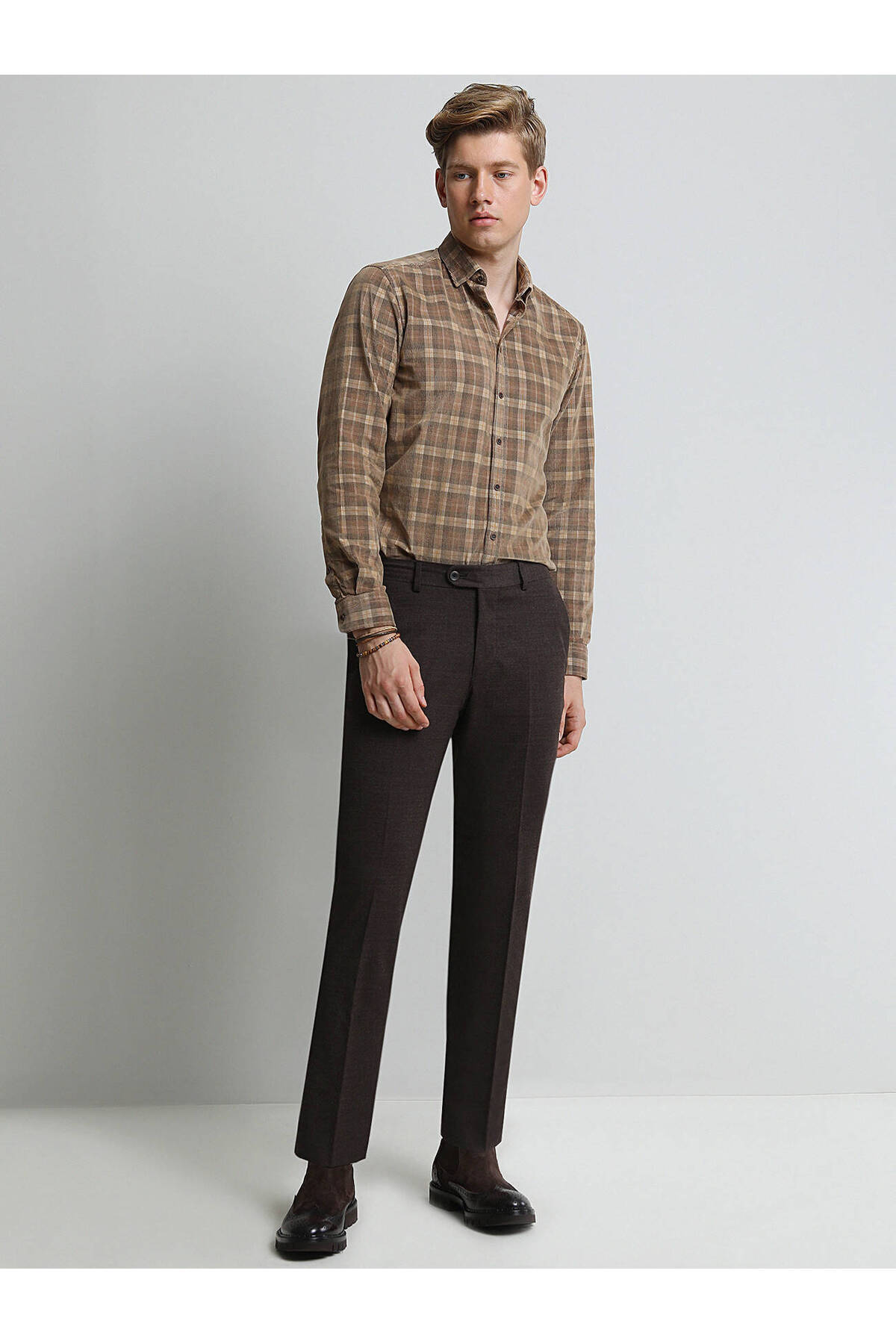 Vizon Düz Dokuma Fitted Fit Klasik Yün Karışımlı Pantolon Vizon Düz Dokuma Fitted Fit Klasik Yün Karışımlı Pantolon KP10117269 62