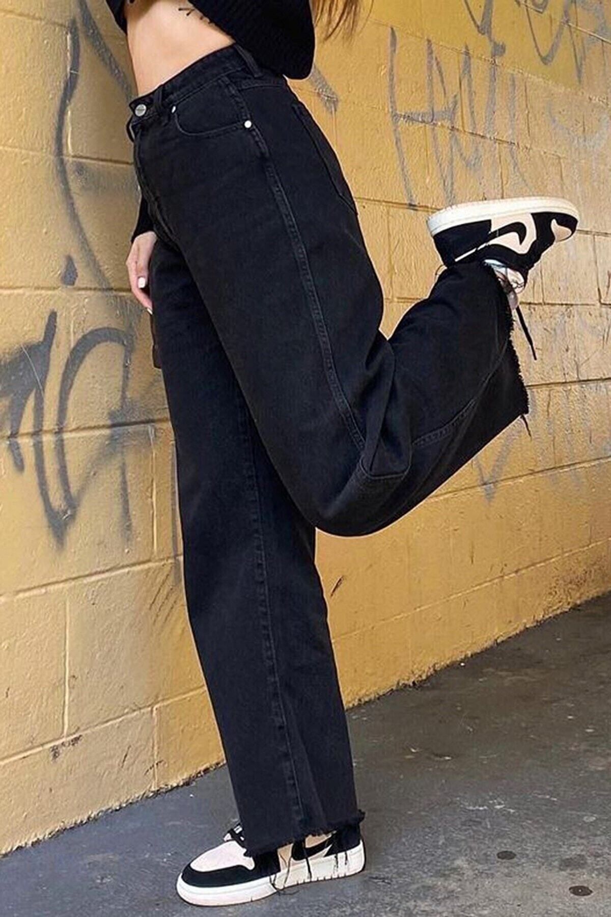 Jolie Salaş Kadın Siyah Rikralı Süper Yüksek Bel Salaş Paça Denim Kot Pantolon Jolie Salaş Kadın Siyah Rikralı Süper Yüksek Bel Salaş Paça Denim Kot Pantolon SLS300 36