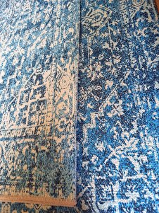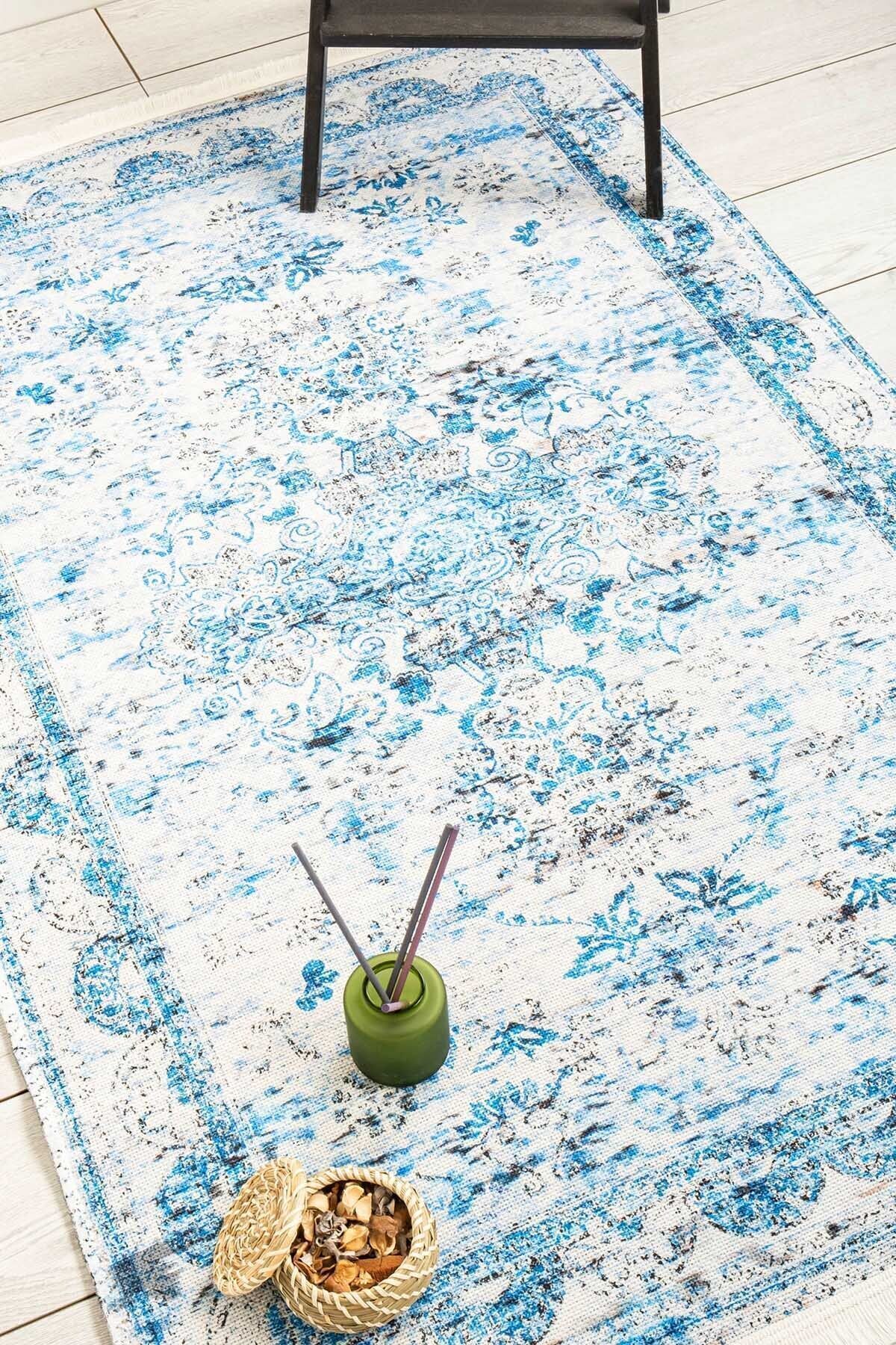 Klasik Desenli Mavi Şönil Makina Halısı Yıkanabilir Saçaklı Kaymaz Taban Halı 7412 Klasik Desenli Mavi Şönil Makina Halısı Yıkanabilir Saçaklı Kaymaz Taban Halı 7412 160 x 230