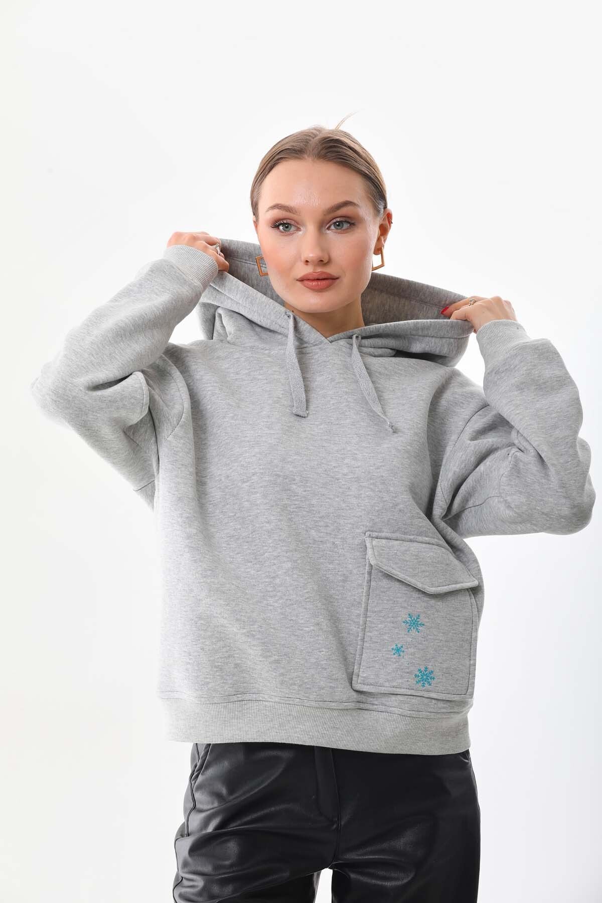 Kadın Gri Bağcıklı Yaka Kolsuz Sweatshirt Kadın Gri Bağcıklı Yaka Kolsuz Sweatshirt WL106 L