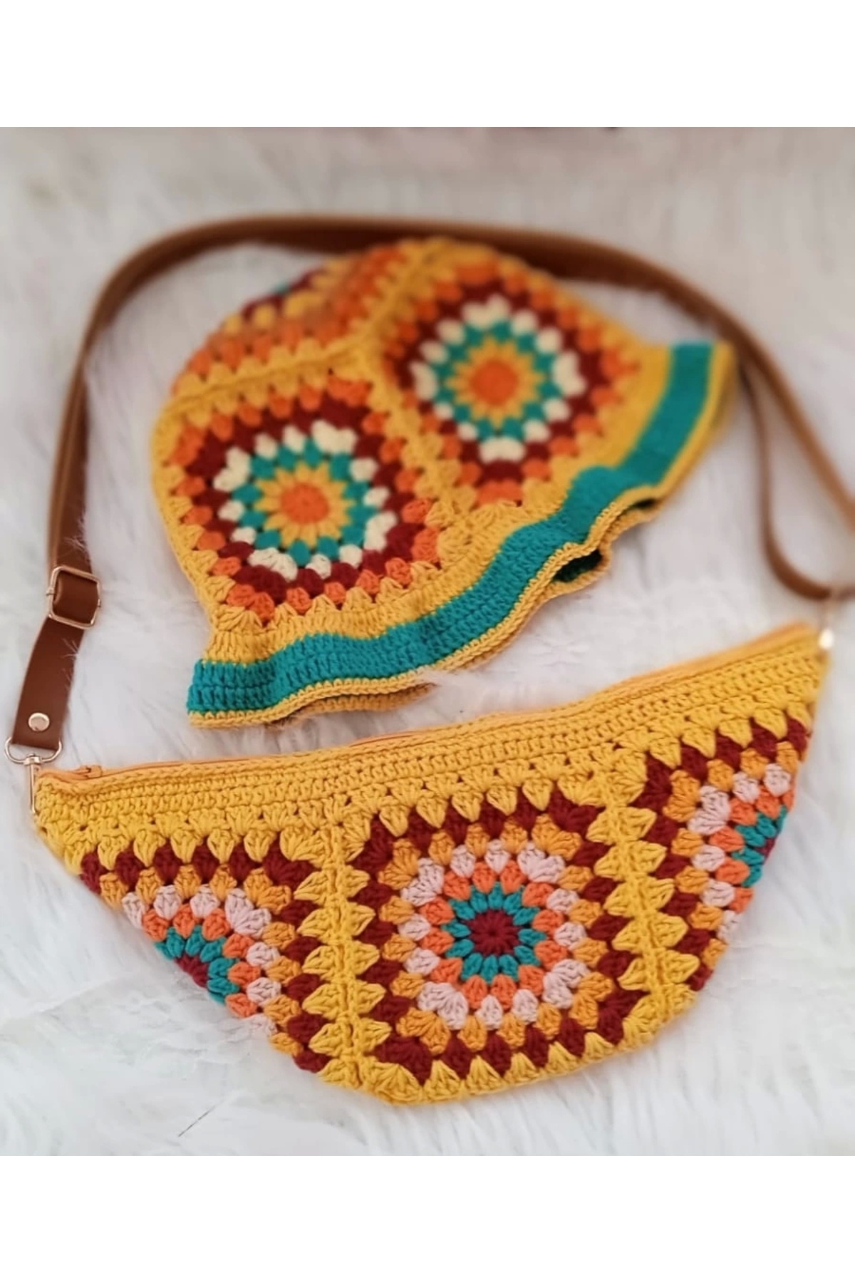 Kadın El Örgüsü Makreme Omuz Çantası Kadın El Örgüsü Makreme Omuz Çantası 068 تک سایز