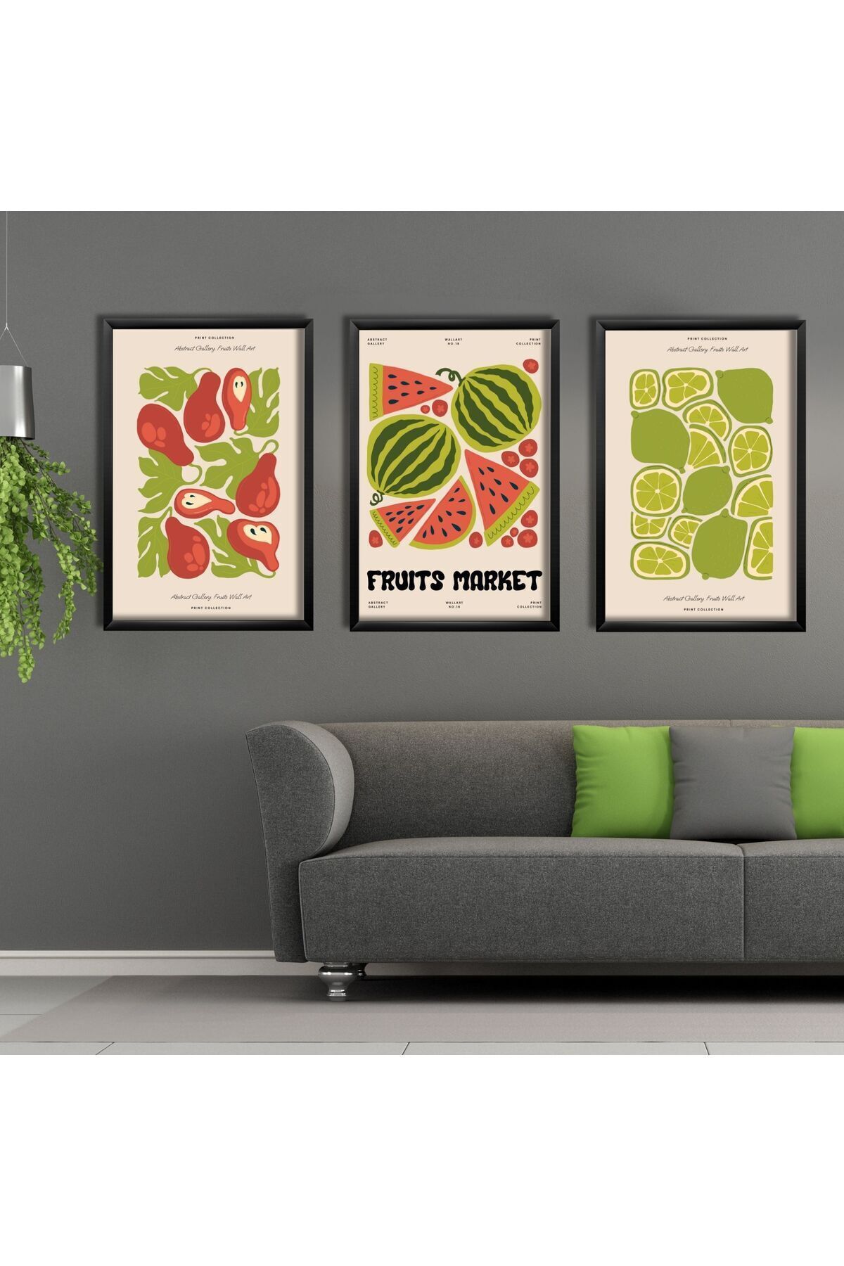 Yeşil Bitkiler Ve Soyut Desenler Saatli Üçlü Kırılmaz Cam Tablo Seti Yeşil Bitkiler Ve Soyut Desenler Saatli Üçlü Kırılmaz Cam Tablo Seti CAMCS194A 100 x 40