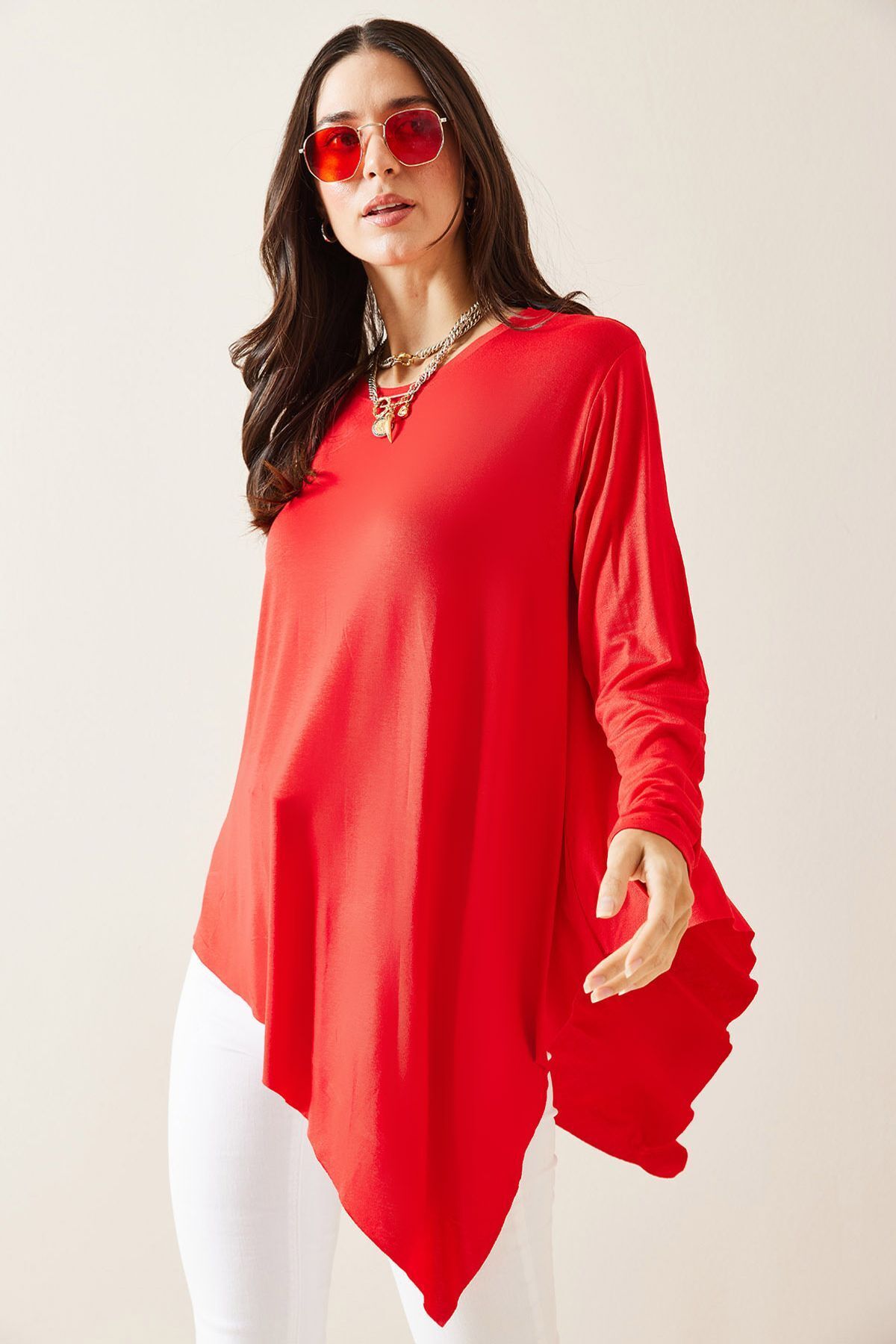 Kadın Beyaz Gömlek Yakalı Asimetrik Tunik TNK-19000034 Kadın Beyaz Gömlek Yakalı Asimetrik Tunik TNK-19000034 L/XL