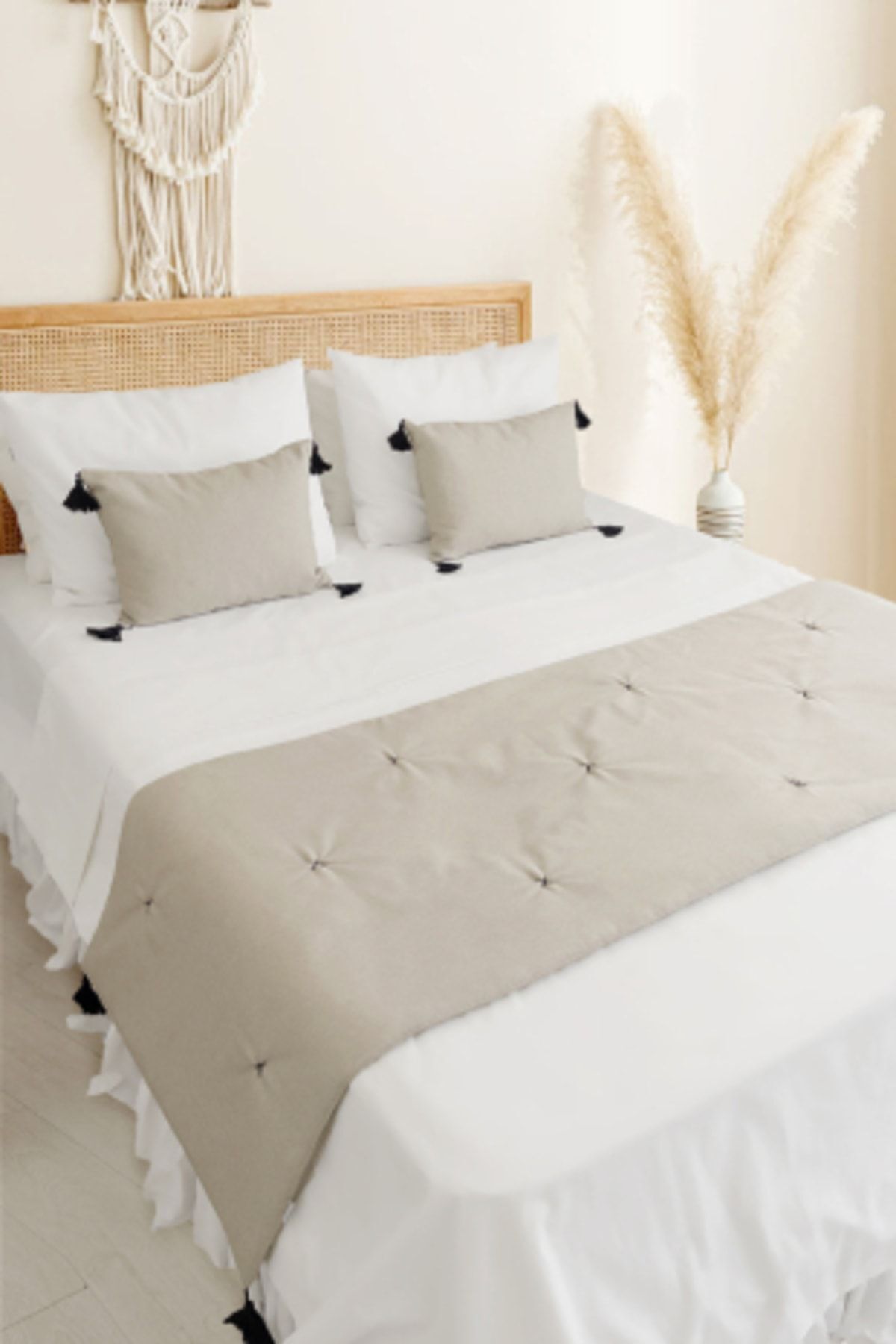 Yatak Runner & Iç Dolgulu Kırlent Seti Çift Kişilik Keten Püsküllü Taş Çeyiz, Yatak Örtüsü Yatak Runner & Iç Dolgulu Kırlent Seti Çift Kişilik Keten Püsküllü Taş Çeyiz, Yatak Örtüsü RTMR2078 تک سایز