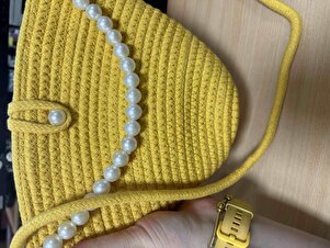 Kadın Sarı Incili Tasarım Omuz Çantası Kadın Sarı Incili Tasarım Omuz Çantası END667 Standart